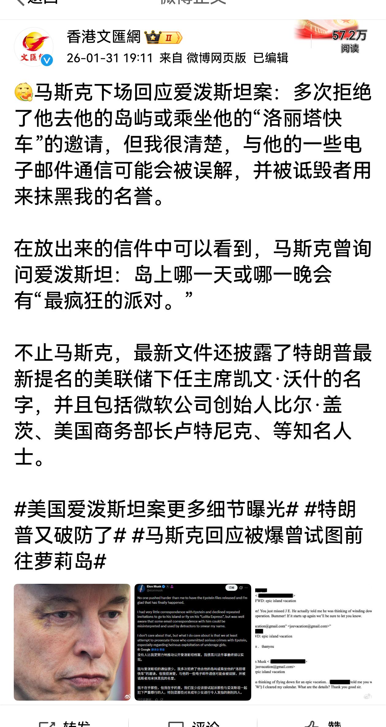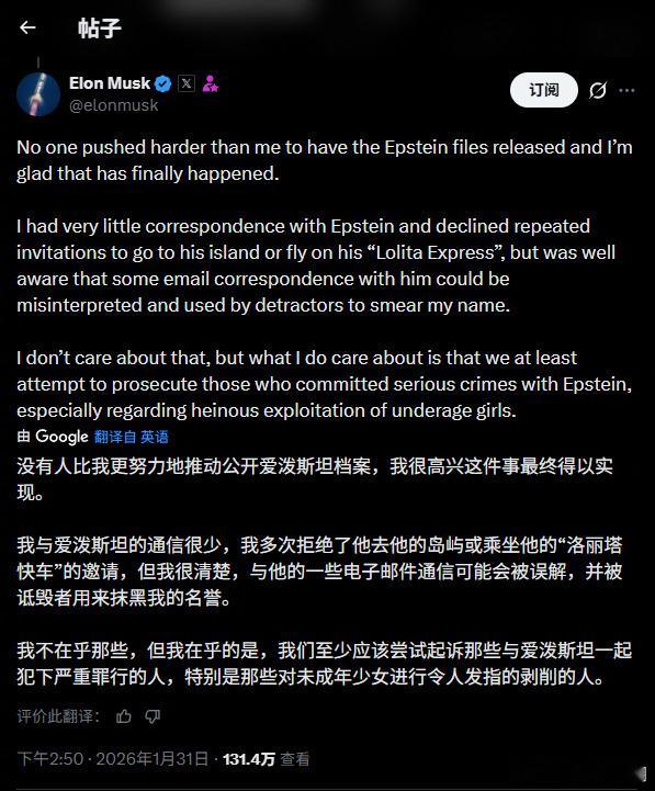 埃隆·马斯克在爱泼斯坦案里也下场了。