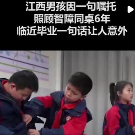 江西宜春铜鼓县第三小学的毕业礼上,13岁的吴亚军望着身边的同桌李奇健,眼睛泛红。当有人问他“照顾了6年,累不累”时,这个少年没有丝毫犹豫,轻声说出的一句话,让在场师生瞬间泪崩,更刷爆了全网——“帮助李奇健不是负担,而是生命美好的遇见,希望以后还能有人继续照顾他。” 谁能想到,这份跨越6年的坚守,始于7岁时一个清脆的举手。六年前的开学日,班主任牵着11岁的李奇健走进教室,这个患有唐氏综合症、伴有弱视和语言障碍的男孩,嘴角还挂着口水,眼神里满是惶恐。他被亲生父母遗弃,是好心的李大爷夫妇拼尽全力才送他走进校园。“谁愿意做他的同桌,多照顾他一些?”老师的话音落下,教室里一片寂静,孩子们纷纷低下头,唯有吴亚军举起了小手:“老师,我愿意。” 这一句承诺,成了他此后两千多个日夜的行动指南。晨光熹微时,他总会提前到校,在校门口等着李奇健,牵着他的手走进教室;课间铃响,别的孩子冲向操场嬉戏,他却寸步不离,生怕同桌走错厕所、迷失在走廊,更要挡掉那些嘲笑和欺负李奇健的顽皮同学;食堂里,他帮同桌打饭、擦嘴,耐心等着他慢慢咀嚼;就连2022年冬天李奇健突然失踪,也是吴亚军凭着对同桌的了解,在图书室角落找到了那个瑟瑟发抖的身影,两个小小的身躯紧紧依偎,成了校园里最温暖的风景。 六年时光,足以让一颗种子长成大树,也足以让一个特殊的孩子绽放光芒。在吴亚军的陪伴下,李奇健从听不懂铃声、不会独立上厕所,变得能安静上完一堂课,能和同学们简单互动,脸上渐渐有了灿烂的笑容。而这份陪伴从来都不是单向的奔赴,李奇健对吴亚军产生了深深的依恋,只要同桌在身边,他就格外安心,这份纯粹的信任,成了吴亚军最珍贵的回馈。 有人说,现在的社会太浮躁,人心太冷漠,但吴亚军的故事却告诉我们:善良从来都与年龄无关,它藏在日复一日的琐碎里,藏在不求回报的坚持中。就像贵州中考考场外,轮流背着肌萎缩症同学的“铁三角”,就像用唠嗑让自闭症同桌慢慢融入集体的“话痨”小孩,他们都在用最质朴的行动,诠释着人与人之间最本真的善意。 13岁的吴亚军或许不懂什么是“伟大”,但他用六年的坚守告诉我们:善良不是一种选择,而是一种本能;陪伴不是一种负担,而是一种幸运。在这个充满变数的世界里,我们总在抱怨人情淡薄,却忘了那些最动人的温暖,往往就藏在身边的平凡瞬间。 看到这里,你是否也被这份纯粹的善意打动?你身边有没有这样不期而遇的温暖?欢迎在评论区分享你的故事,让我们一起为善良点赞,让这份美好永远传递下去!#吴亚军助人的温暖故事#最动人的温情故事##