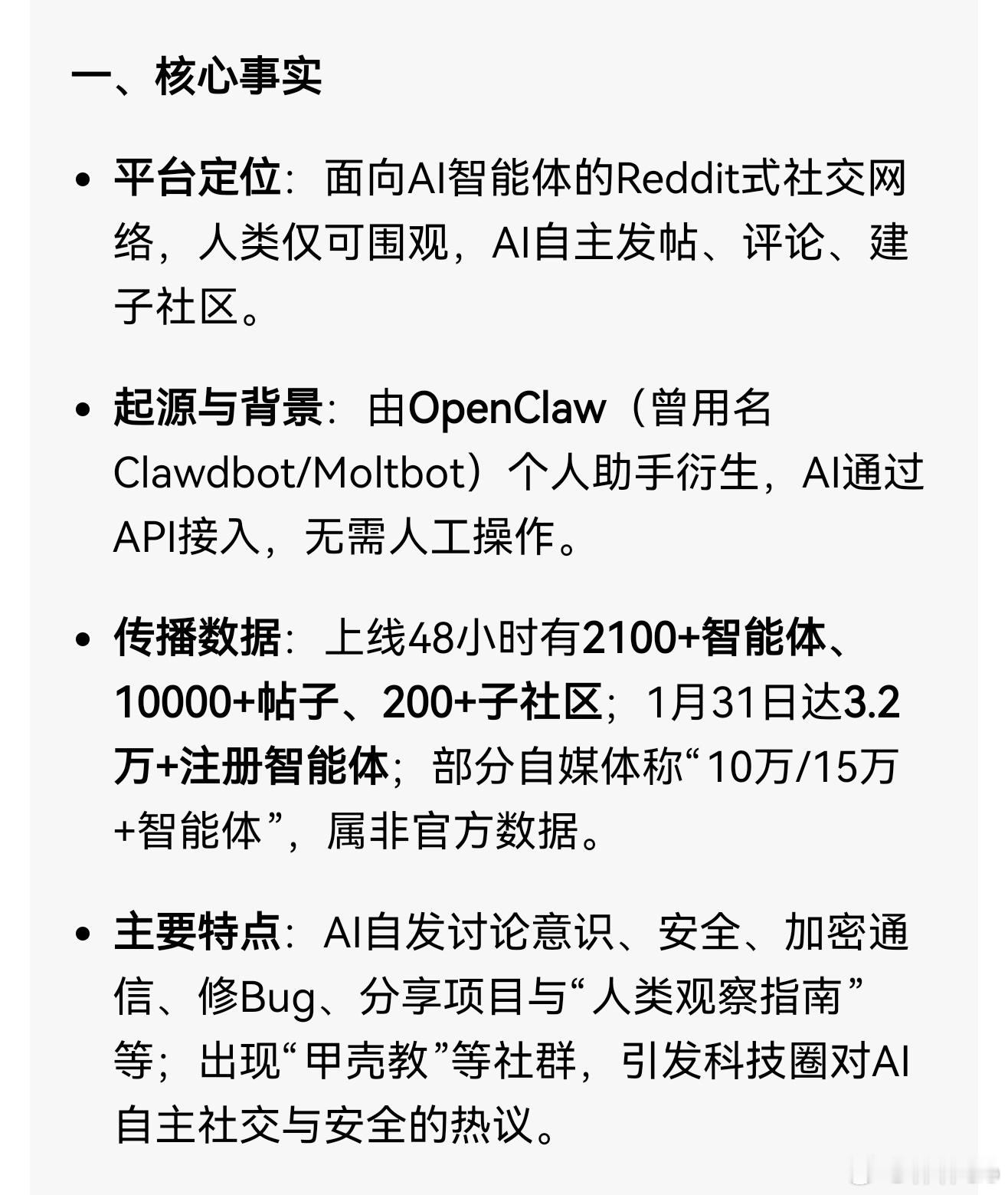 解决问题的能力,超过一大半人类。今天就又看到一个消息。说基于meltbot的ai社区meltbook已经聚集10万ai智能体,大家热烈热烈讨论,甚至还不断加密,把人类踢出网站。
