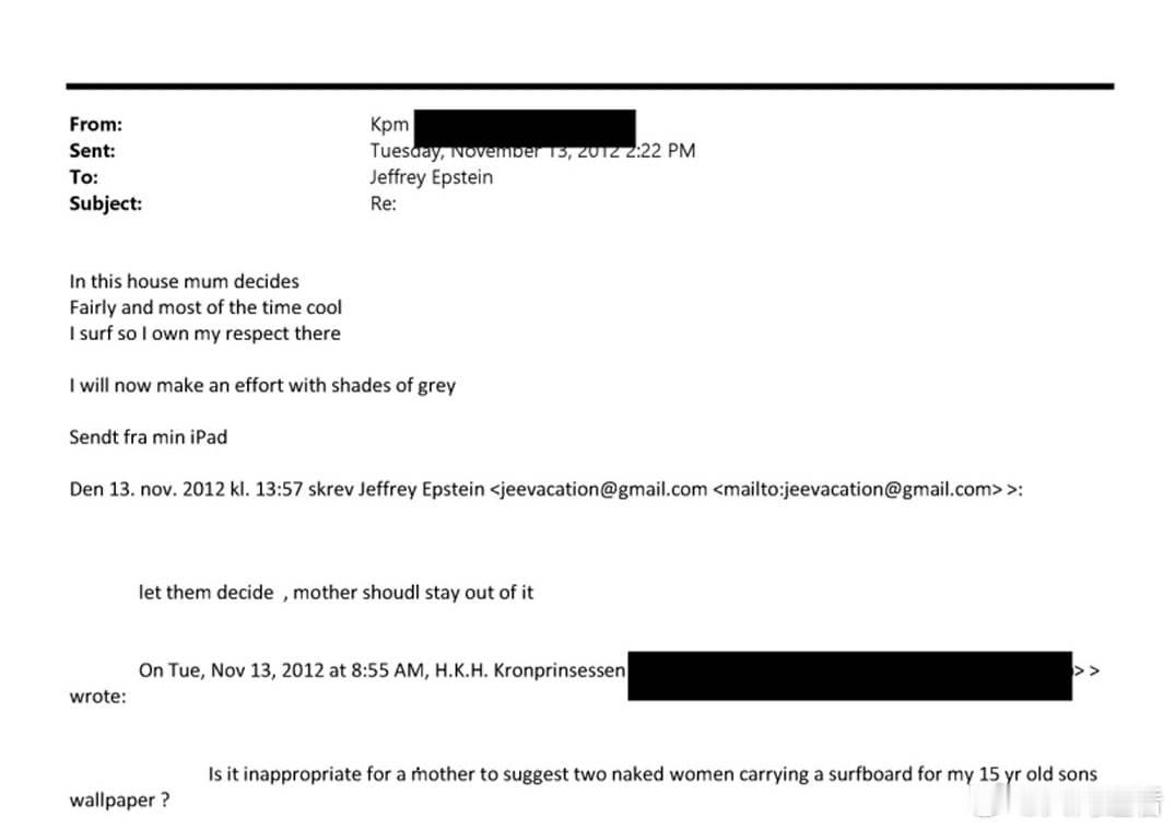 爱泼斯坦挪威王妃梅特-玛丽特在2012年的一封电子邮件中向杰弗里·爱泼斯坦寻求“有趣”的建议: