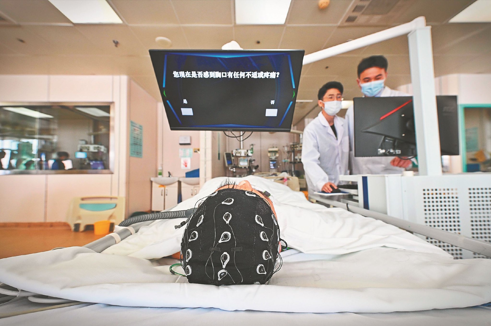 1月7日,安徽医科大学第一附属医院重症医学科开展非侵入式脑机接口系统的临床问询应用。
