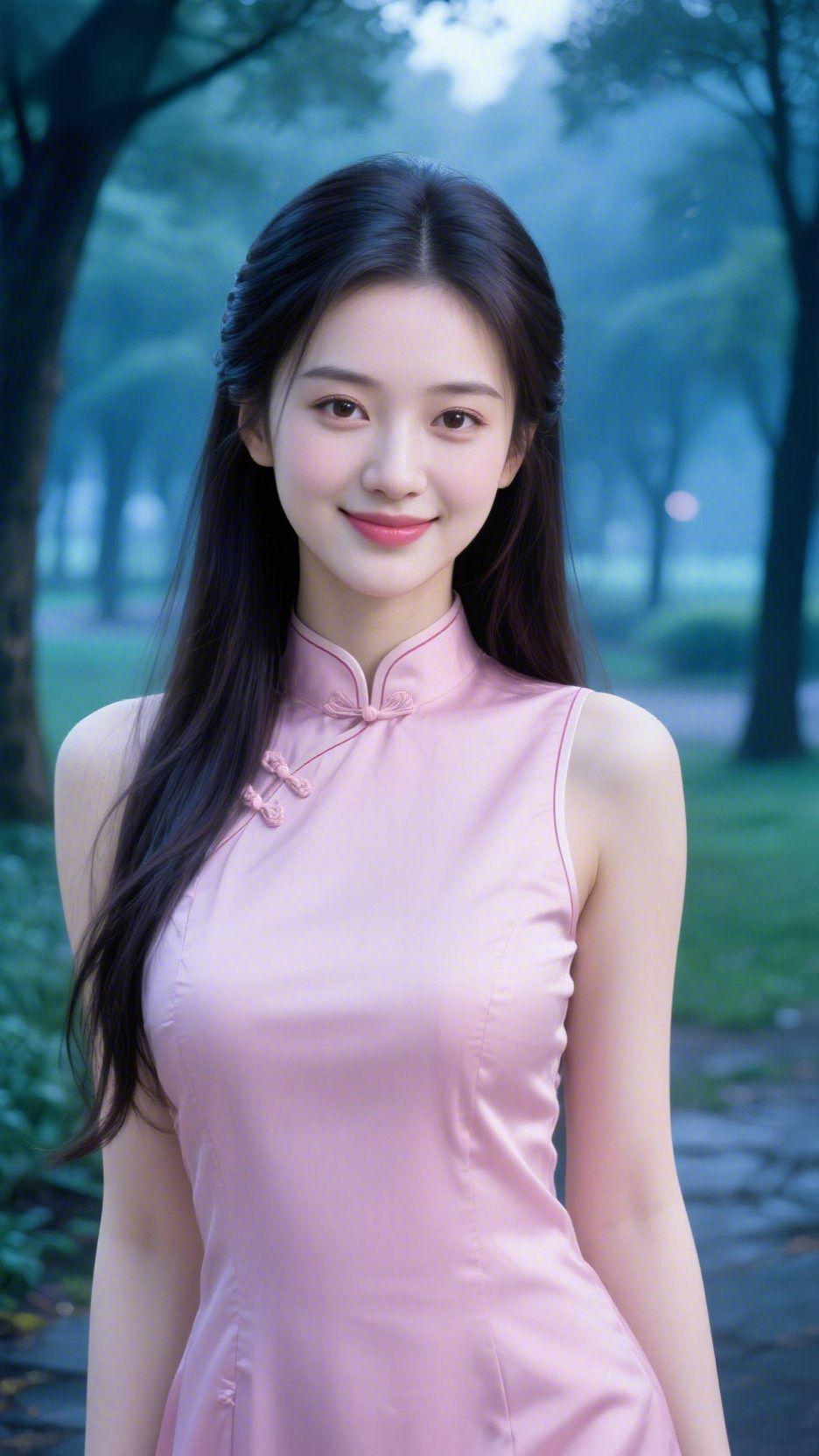 《粉旗袍的林间温软》 晨雾裹着草木的潮意漫过林间小径,她身上的粉缎旗袍像盛了半缕春的柔——立领盘扣妥帖轻合,衬得肩线舒展如枝桠抽芽,缎面浸着晨雾的润,连颜色都软得像晕开的桃花。 长发顺着肩线垂落时,她抬眼笑的弧度,和林间的风同频轻晃。没有张扬的修饰,是像雾裹松枝般的舒展:旗袍裹着恰好的松弛,淡粉晕在衣料上的柔,把自然的清润与东方的温婉,揉成了此刻的模样。 我们总念着传统服饰里的舒展,大抵便是这般——像粉缎轻覆的软,像雾落肩头的淡,没有局促的刻意,只把文化的温雅,穿成了自然里的风景。 旗袍穿搭 东方韵味