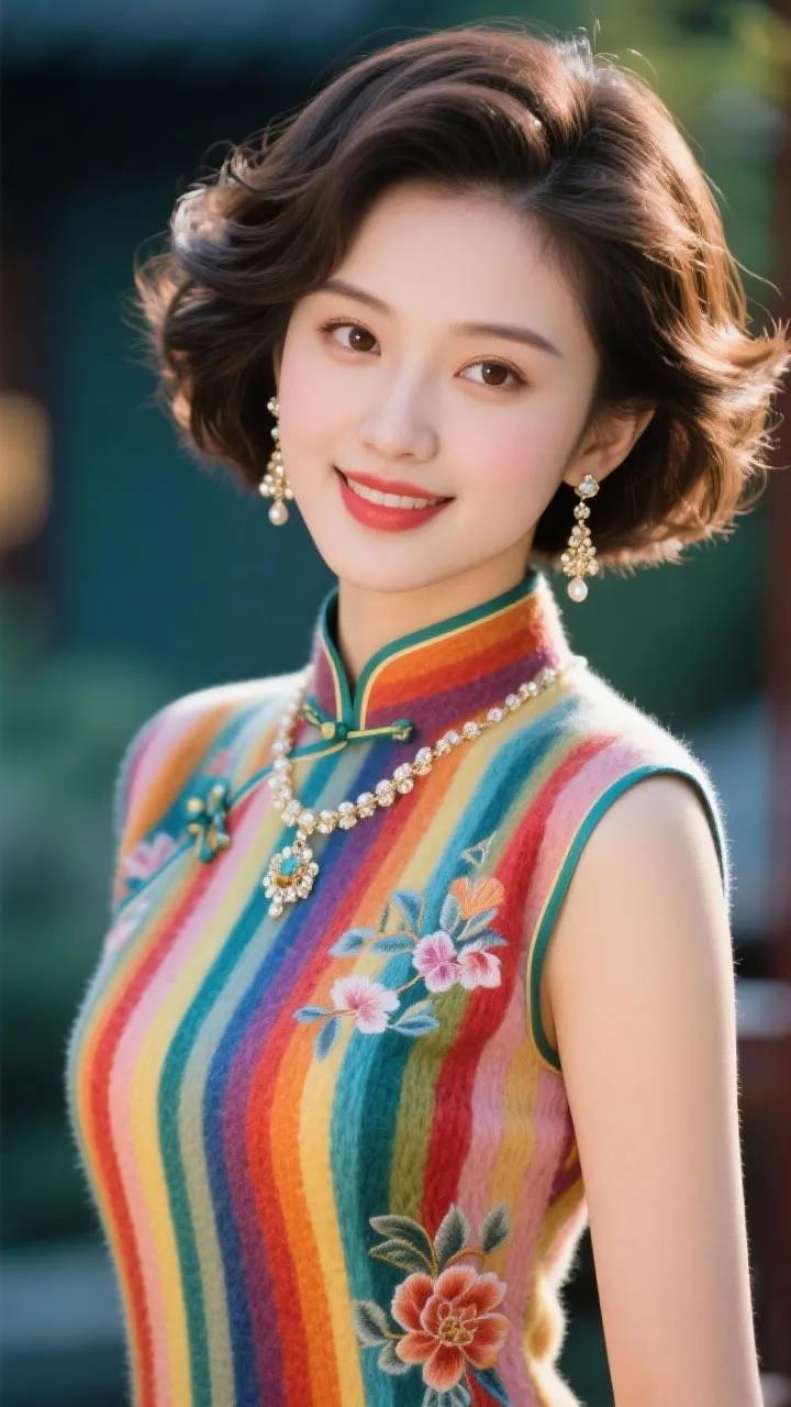 这姑娘穿着花旗袍,好漂亮!