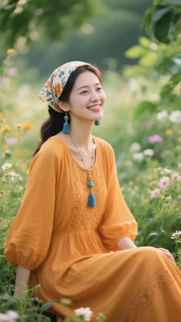 复古风头巾搭配彩色珠宝,优雅动人