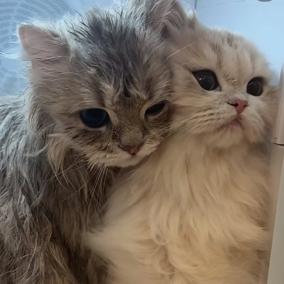洗澡后烘干,明明那么大的地,两只猫非得贴在一起,哎呀呀。