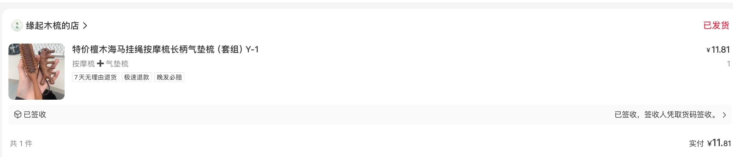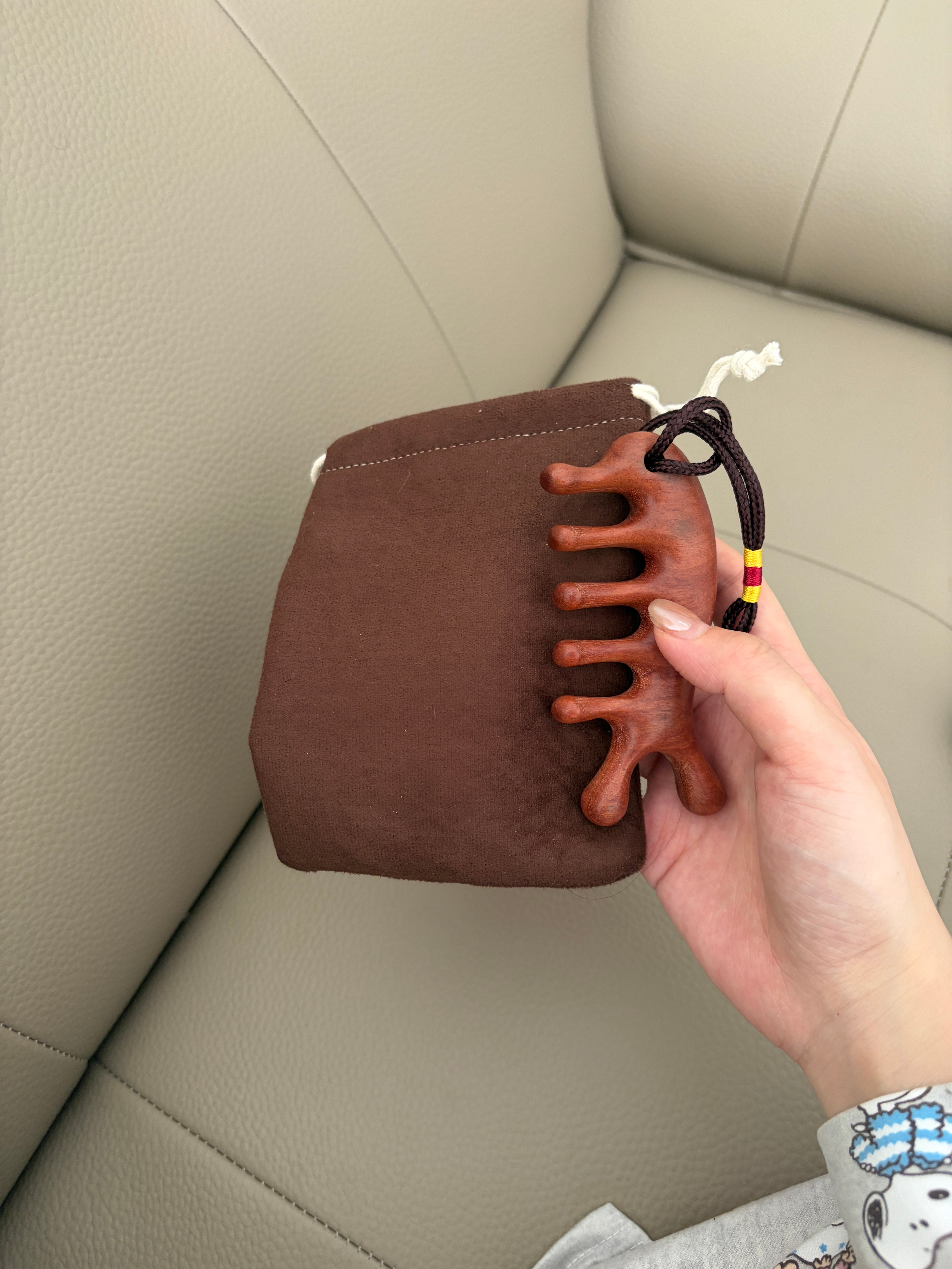 我要给你们分享这个梳子 檀木材质闻起来是让人很安心的味道梳头发超级舒服!!!梳一次下来只掉两三根…帮助按摩头皮 感觉整个头皮都很放松 多梳头发有助于血液循环 还会加快头发新陈代谢