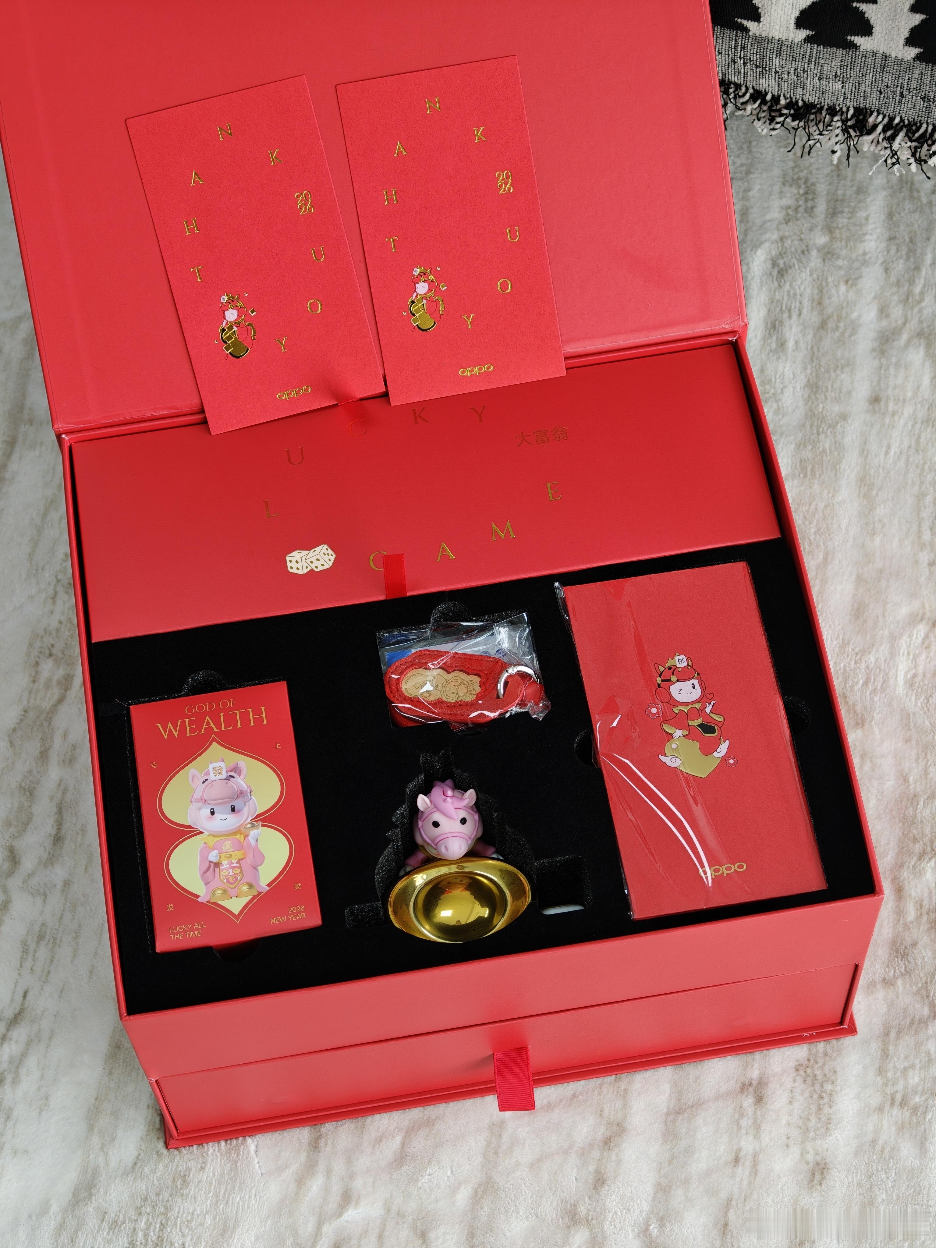 感谢OPPO寄来的「时来运转」新春礼盒!这礼盒不但喜庆还含金量十足,里面有金贴包