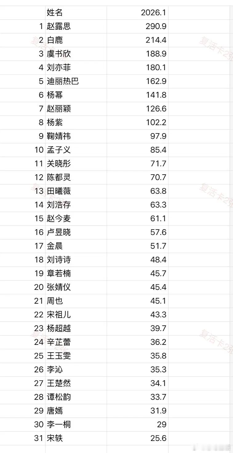小红薯🍠女明星话题一月增量及总量排名赵今麦骄阳似我有效播剧增量第一赵露思靠着去