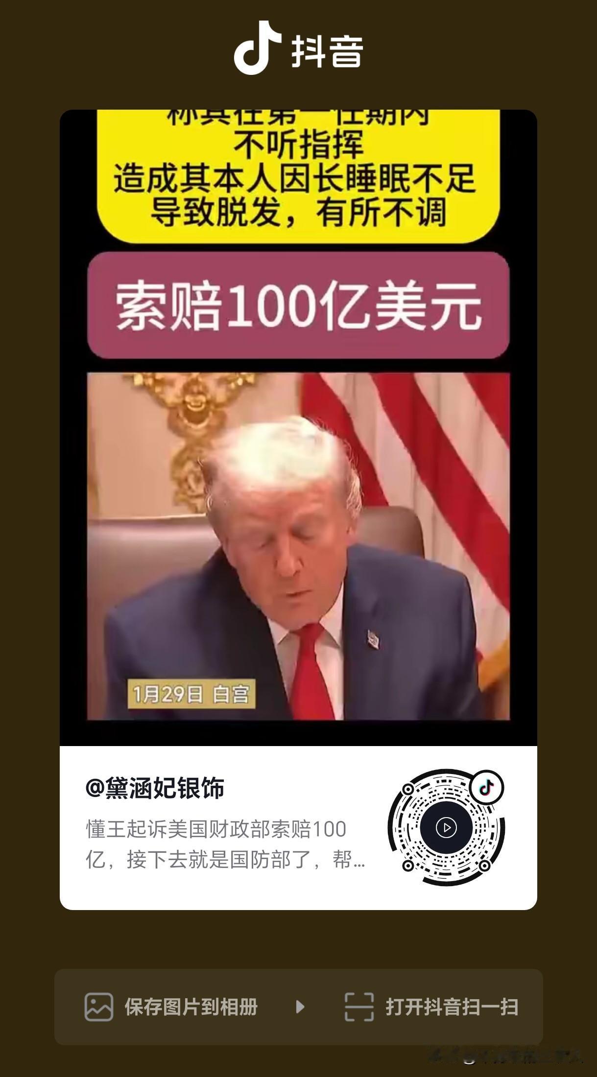 如果我没有猜错,这笔赔款必须美国总统特朗普同意,才能赔给前总统特朗普吧。 想想都魔幻:特朗普左手批钱右手接,主打一个自己给自己发钱! 照这节奏下去,建国同志这四年任期可有的玩了,隔三差五告一波自家政府,百亿百亿的薅,任满少说也能整几百亿,这赚钱速度,比做生意可快多了! 我都替他想好了,啥也别担心,大胆搞,毕竟有权不用,过期作废,就算后面的美国总统想清算又咋样,实在不行就带着全部家产润来中国,咱大中国敞开门欢迎,我们罩着你! 真心期待特朗普索赔成功的好消息,到时候立马把视频甩给老板看,问问他:人家总统脱发能要百亿赔偿,我加班熬秃了,是不是也得给点精神损失费? 毕竟咱这头发,那也是实打实熬没的,不要一百亿,一百块总要赔吧。