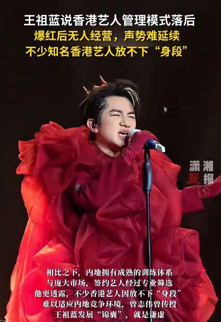王祖蓝这访谈敢说啊!不光点出香港艺人管理模式落后,还提到“放不下身段”的问题。想想也是,香港艺人街头独行是常态,内地有些不知名的明星却保镖随行,对比挺鲜明。