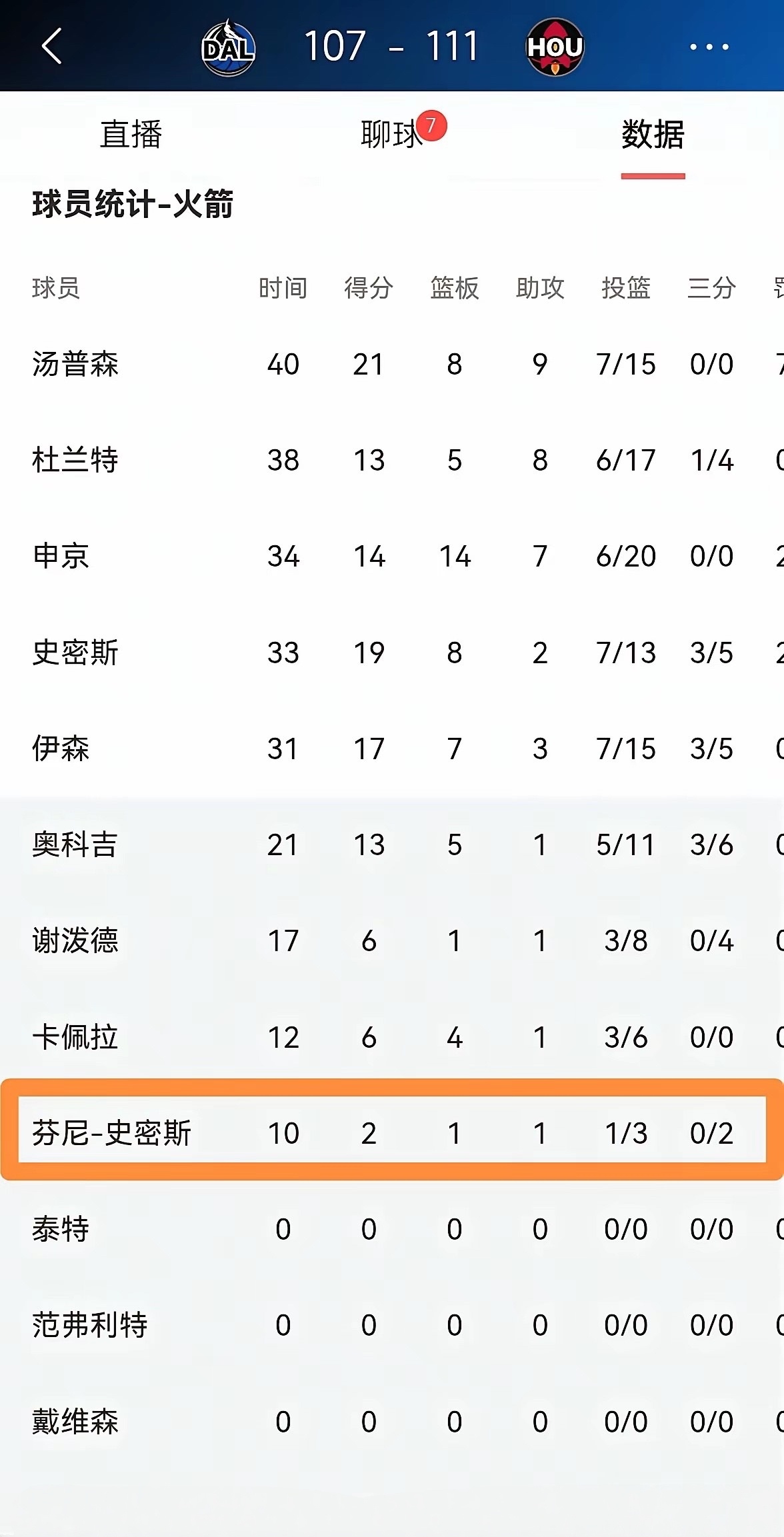 我强烈建议火箭趁早交易走芬尼-史密斯!火箭主场以111:107险胜独行侠的比赛中,芬尼-史密斯又一次的迷失了自我,他在替补出战的10分钟里,投篮3中1,其中三分球2中0只得到2分,他的场上正负值为全队最低的-12。值得注意的是,由于芬尼-史密斯的状态过于糟糕,因此他仅仅得到了10分钟的上场时间。坦白说,以芬尼-史密斯如今的竞技状态来看,他很难成为火箭的夺冠拼图,火箭应该趁早将他交易走才是明智之举。nba火箭vs独行侠申京准绝杀独行侠
