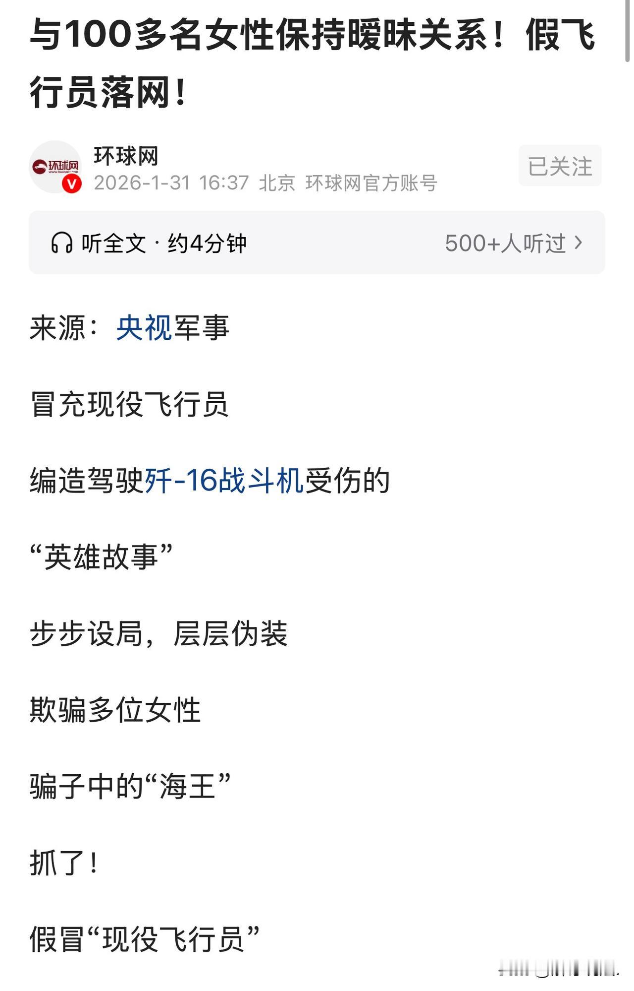 “恋爱中的女人智都为零!”山东烟台,女子网友介绍认识了J16飞行员,被对方高大帅气以及体面的工作吸引,很快就确定了恋爱关系。期间,男友提出让女子发私密照,女子也没多想,以为这就是恋人之间的情趣,就发了过去。谁知,紧接着,就有陌生人加了女子,说手上有女子的私密照,并威胁女子,让女子拿20万元钱。女子害怕极了,把这事跟男友说了。男友表现的很有担当,愿意和女子一起出钱。哪曾想,钱刚打给对方,男友就人间蒸发了。女子才意识到这是一场精心布置好的爱情陷阱。女子怒了,果断报警。 陈女士眼看着身边的朋友都已为人妻、为人母,自己却仍孤身一人,连个男友都没有。 亲朋好友但凡见到她,总爱刨根问底:“怎么还没处对象呢?” 搞得她一个头两个大,还得耐着性子一一应付。 于是,她下定决心要尽快脱单。可难题摆在眼前:年轻那会儿,身边从不缺追求者,可她心高气傲,挑三拣四,生生错过了不少优质男生。 如今成了大龄剩女,身边别说追求者,连个合适的异性都少见,她常打趣自己“身边的苍蝇都是母的”,脱单谈何容易。 没法子,她只好放下身段,拜托身边人帮忙介绍对象,闲时还会上网聊聊天,盼着能撞上缘分。 没想到,缘分这东西还真说不定,网海捞针般,经一位网友牵线,她认识了男子徐某。 对方竟是一名飞行员,驾驶的还是J16战机。 单看这身份条件,已是妥妥的优质男。认识没多久,徐某就给陈女士发来了照片,相片里的男子英俊挺拔,五官周正,说是百里挑一也不为过。 陈女士瞬间被俘获了芳心,甚至悄悄觉得自己有些配不上对方。 好在徐某对她十分热情,每天主动分享日常,言语间满是温柔体贴,一来二去,两人便顺理成章地确定了恋爱关系。 可徐某很快表示,自己身份特殊,工作涉及保密规定,暂时没法跟她见面。 陈女士满心欢喜,只觉得对方靠谱稳重,当即表示理解:“只要咱们真心相爱,这点等待算什么?” 就这样,两人维持着纯粹的网恋关系,靠屏幕上的文字传递彼此的思念与牵挂,情到浓时,徐某会要求陈女士给他发私密照片和视频。 陈女士处于热恋中,早没有了防备之心,虽然有点羞涩,但还是将自己的私密照发给了对方。 谁知,没过多久,一名陌生人就加了自己好友。 对方口口声声说手里有陈女士的私密照,让陈女士拿钱了事,对方还狮子大开口要20万。 “恋爱中的女人智商都为零!”陈女士根本都没想,为什么对方手里为什么会有自己的私密照,她赶紧把这件事和徐某说了。 让陈女士欣慰的是,男友表示和她一起解决此事,男友和合出这20万元,并由徐某拿给这名陌生人。 万万没想到,这笔钱拿走以后,自己的男友人间蒸发了,陈女士才恍然大悟,自己被骗了!果断报警。 警方调查后发现,原来徐某的真实身份根本不是什么飞行员,真实就是一名厨师。 他以这种方式欺骗的女性,不止徐女士一人,其手机上与之保持亲密关系的女性就不下100人。 让陈女士崩溃的是,当初给她介绍对象的网友,以及威胁自己的陌生人,都是徐某本人分饰三角扮演的。 目前,徐某因涉嫌多项罪名被刑拘。 《刑法》第274条规定:敲诈勒索公私财物,数额较大或者多次敲诈勒索的,处三年以下有期徒刑、拘役或者管制,并处或者单处罚金;数额巨大或者有其他严重情节的,处三年以上十年以下有期徒刑,并处罚金;数额特别巨大或者有其他特别严重情节的,处十年以上有期徒刑,并处罚金。 本案中,徐某虚构飞行员身份骗取陈女士私密照片,再冒充陌生人以泄露私密照片相威胁索要20万元,属典型的敲诈勒索,完全符合该条规定的犯罪构成要件。 涉案金额20万元,达到“数额巨大”标准;且一人分饰三角、同时诈骗多名女性,属情节严重,应在三年以上十年以下有期徒刑幅度内量刑,并处罚金。 还涉嫌诈骗罪(虚构身份骗财)、冒充军人招摇撞骗罪(冒充空军飞行员),司法实践中通常会数罪并罚,从重惩处。 这件事曝光后,网友纷纷调侃:这让我想起一句话,自古真情留不住,唯有套路留人心。怪不得现在的老实人都找不到媳妇了! 这也太缺德了!利用大家对军人的崇拜心来行骗,不仅伤害了这些女性的感情,还侮辱了“军人”这个神圣的职业。明明是个厨师,非要扮什么飞行员,还一人分饰三角玩“杀猪盘”,这种把戏竟然能骗那么多人,真是人心难测!还好警察叔叔及时破案,这种诈骗分子就该重判,绝不能放过!