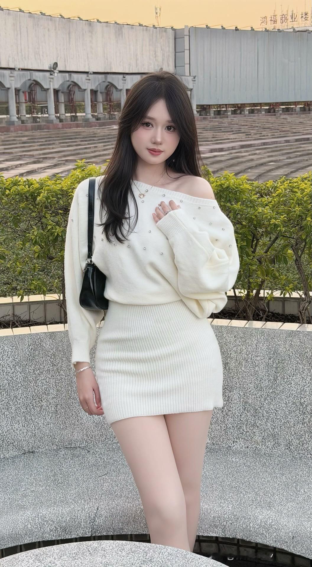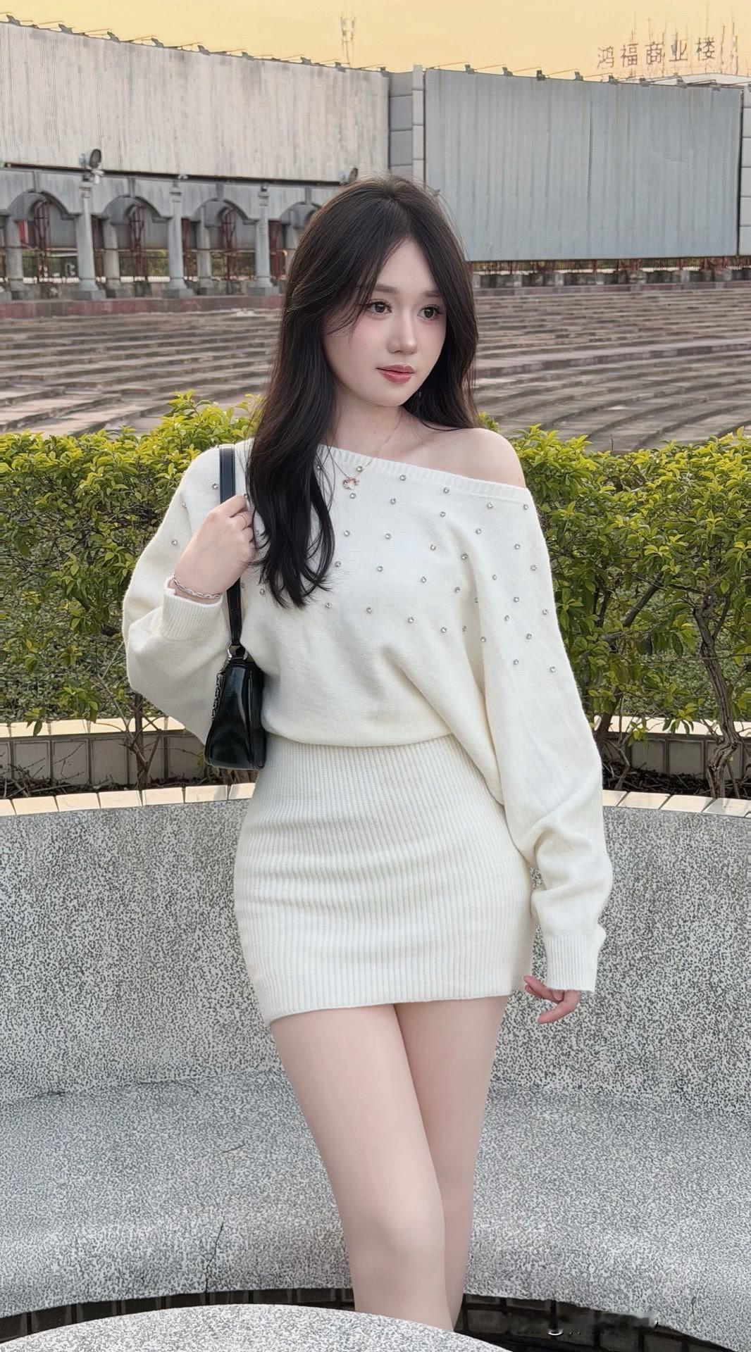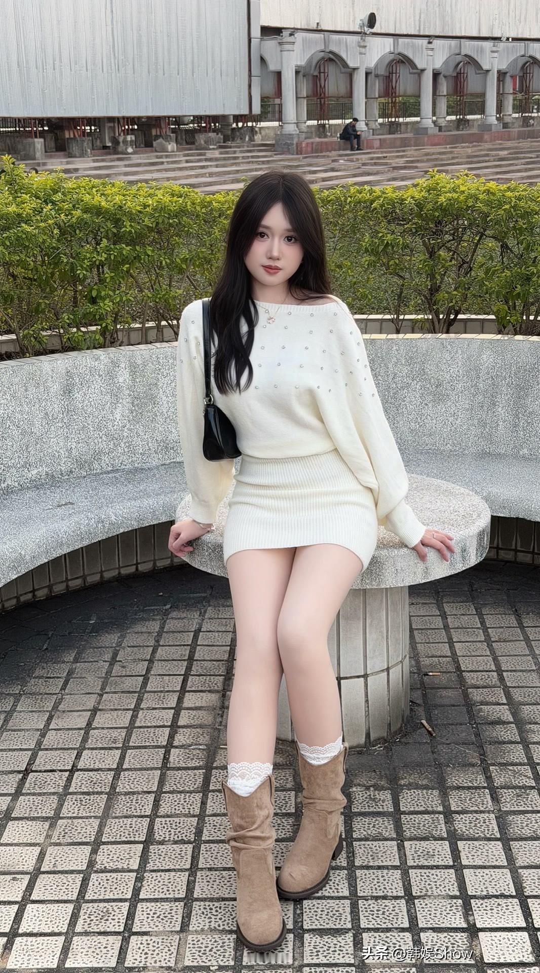 秋日穿搭指南:白色毛衣+短裙,甜美又保暖!🍂👗👢时尚穿搭 网络美少女穿搭分享 漂亮小姐姐
