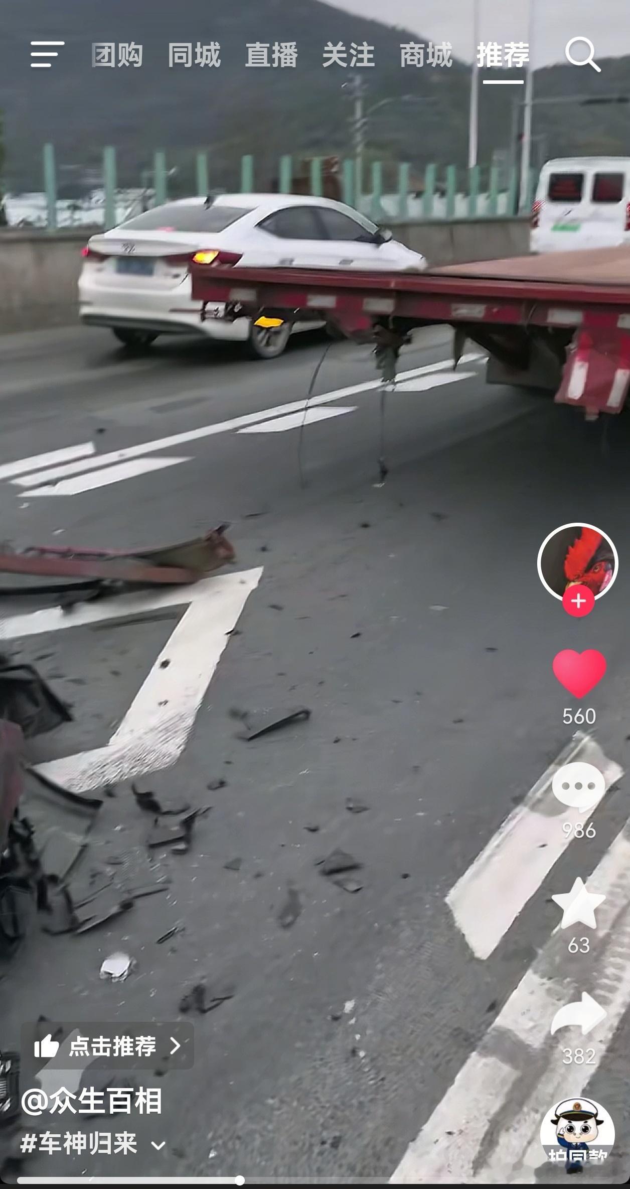 A柱完好,气囊打开,它是电车,也没起火迹象。油车都可能汽油机油泄露其他危险。