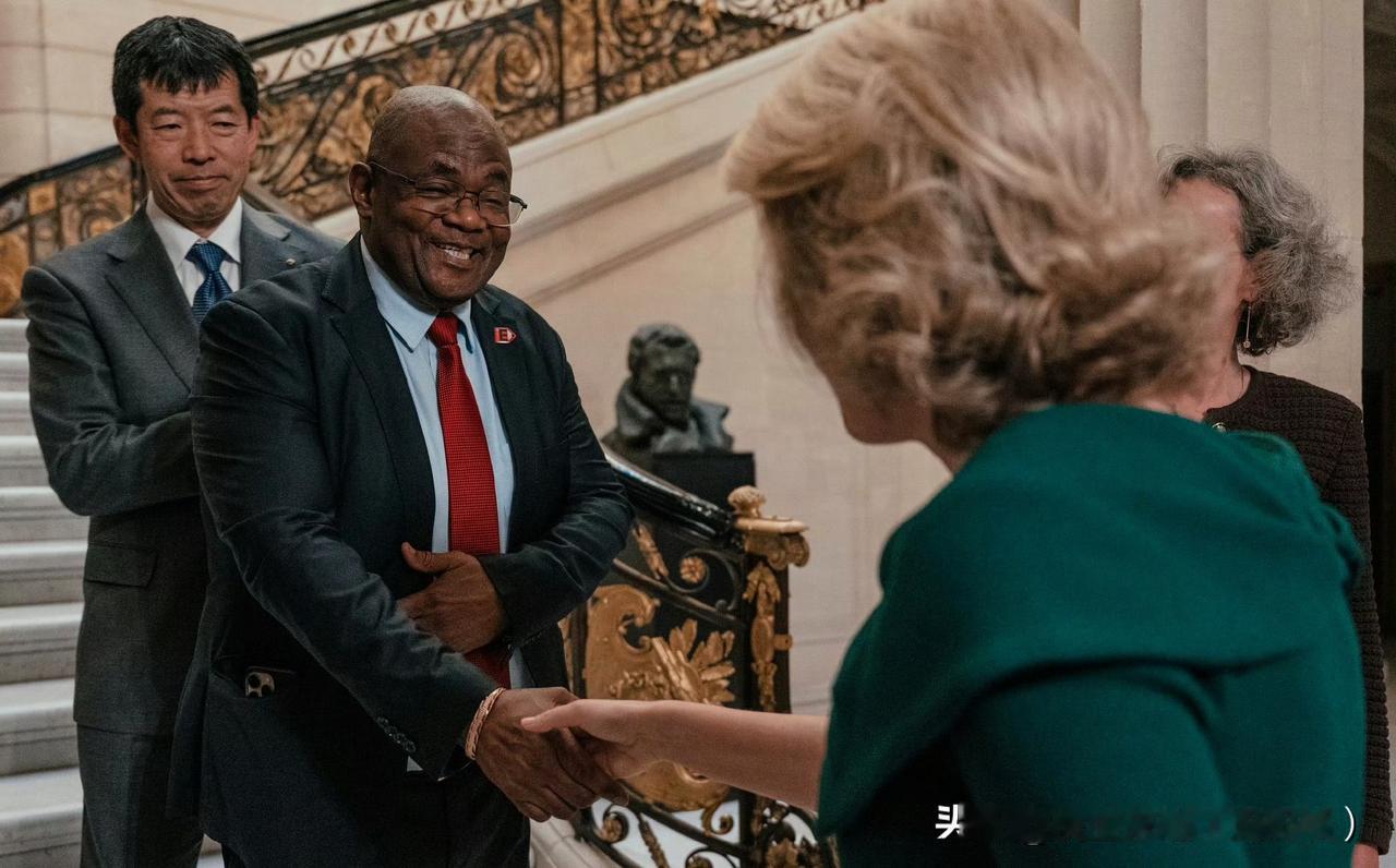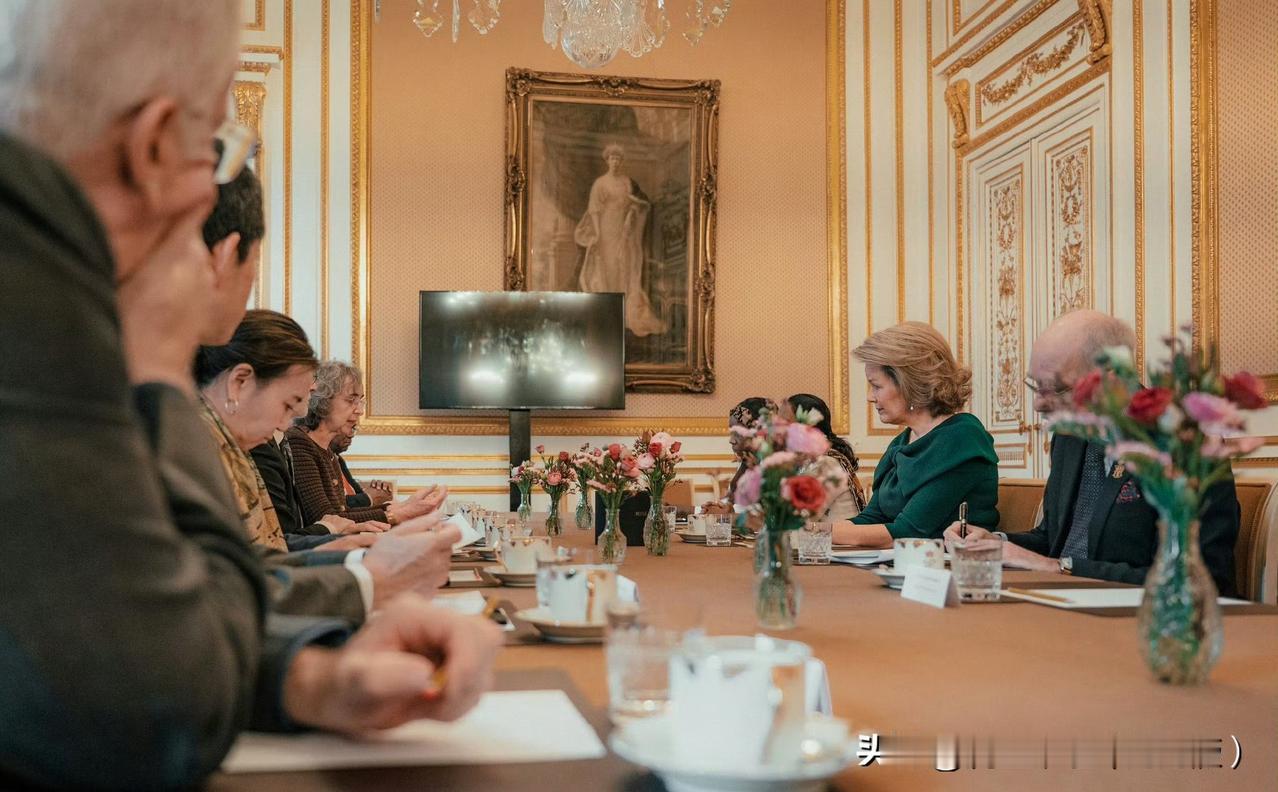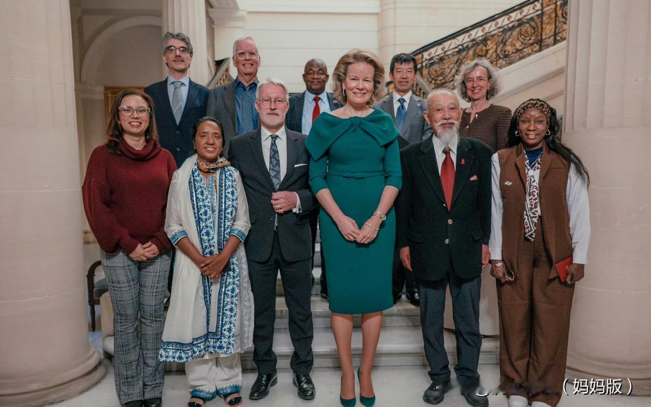 玛蒂尔德王后在王宫出席接待会,合影中真的好高啊!