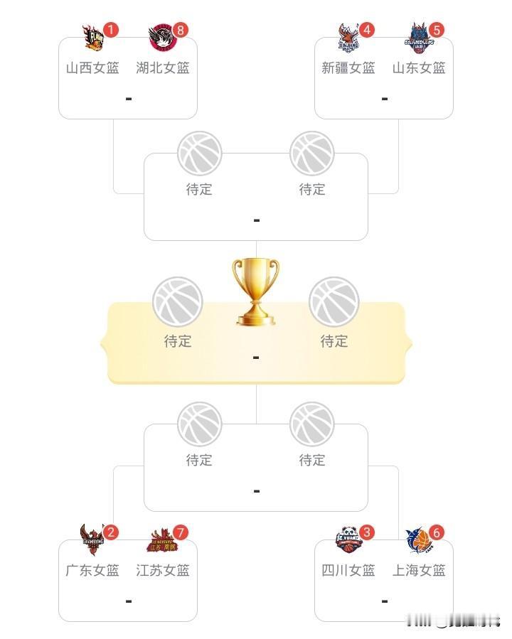 女篮24-25赛季季后赛对阵 第一山西战第八湖北 第二广东战第七江苏 第三四川战第六上海 第四新疆战第六山东