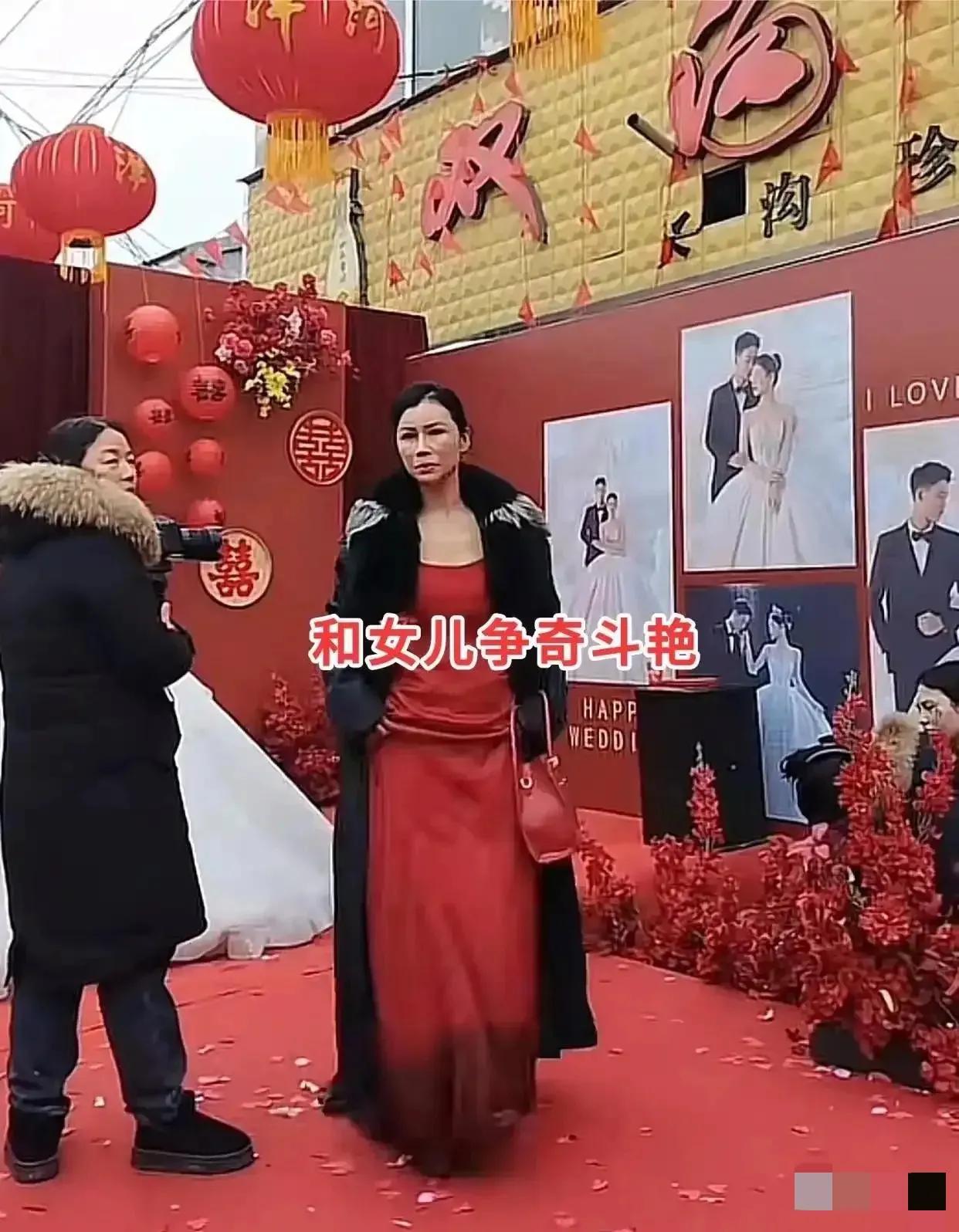 河南这场三分钟婚礼视频看呆全网!丈母娘穿红抹胸站C位提空包走秀,新郎两次阻拦无果直接转身离场。全网炸锅! 婚礼现场的宾客们裹着羽绒服缩着脖子,谁也没料到本该是主角的新娘,会被自己亲妈抢了所有风头。丈母娘那件红抹胸礼服像团烧得太旺的火,在满场的黑灰羽绒服里扎眼得很。她把外面的黑大衣一甩,露出精心勾勒的曲线,连摄影师都忍不住把镜头往她那边偏。老丈人在旁边皱成一团的脸,都快能夹碎核桃了,扯着她胳膊说“这天儿冻出病咋整”,她却把脸一扭,眼尾扫过镜头的劲,比新娘的婚纱还晃眼。 其实婚礼上长辈想出彩不是错,但得分清场合。新娘那天穿着拖地的白纱,手里攥着捧花,从入场到合影,嘴角的笑都僵得像贴上去的贴纸。本该是她人生里最亮的一天,亲妈却把C位当成了自己的T台。你看旁边的婆婆,一身素净旗袍搭着黑大衣,安安静静坐在角落,眼神全落在新人身上,这才是长辈该有的体面。 更有意思的是视频里那个空包,丈母娘提着它走来走去,包扁得像张饼。有人猜是为了搭衣服,有人说就是想凹造型。可不管怎么说,这股子“我要赢”的劲,已经把婚礼的温情味冲得一干二净。老丈人最后甩脸子走人,与其说是怕冷,不如是臊得慌——自己老婆在女儿的婚礼上抢尽风头,传出去邻里街坊该怎么说? 这事闹到全网热议,根本不是穿衣自由的问题,是分寸感的缺失。再亲近的家人,也得在别人的主场守好自己的位置。婚礼是给新人办的,不是长辈的走秀场。你可以打扮得漂亮得体,但不能把主角的光全抢了去。 各位读者你们怎么看?欢迎在评论区讨论。