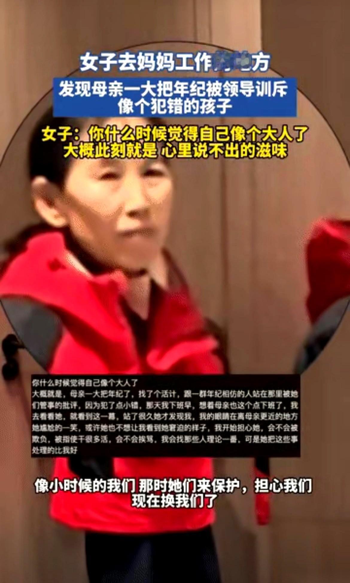 我妈,58了,被人指着鼻子骂。 骂她的是个还没我大的小丫头片子,就因为地上有几片纸屑。 我隔着十几米远,都能看见我妈的腿在抖,头埋得快戳进地里,那样子,活像个做错事的小学生。 我手里还给她攥着杯热奶茶呢,双倍糖的。 想冲上去,一秒钟的事。 可我脚底下像灌了铅。 冲上去,替她把尊严要回来,然后呢? 然后她明天就丢了这份工,我那八千多的房贷,谁来帮我一起扛? 那一刻我才明白,成年人的世界里,有时候尊严真不是最重要的。 饭碗比天大。 最让我绷不住的,是她偷偷抬头,看见了我。 她那眼神,不是求救。 是惊恐。 是那种“完了,被闺女看见我这么窝囊”的、铺天盖地的羞愧。 她赶紧把头埋得更低了,生怕我过来。 那一瞬间,我眼泪直接就下来了。 我妈不怕挨骂,她怕我看见她挨骂。 她一辈子没对谁低过头,现在为了我这套破房子,把脸放在地上让人踩。 我没过去。 我把奶茶悄悄放她工具柜上,转身就走了。 我不敢回头,我怕她看见我哭了。 我们这代人,总觉得把日子过好,让爸妈衣食无忧,就是孝顺。 可我们可能永远都不知道,他们为了让我们能“抬头挺胸”,在背后替我们弯了多少次腰,咽了多少委屈。 他们把自己的尊严,藏得严严实实的。 藏在我们看不见的地方,一藏,就是一辈子。