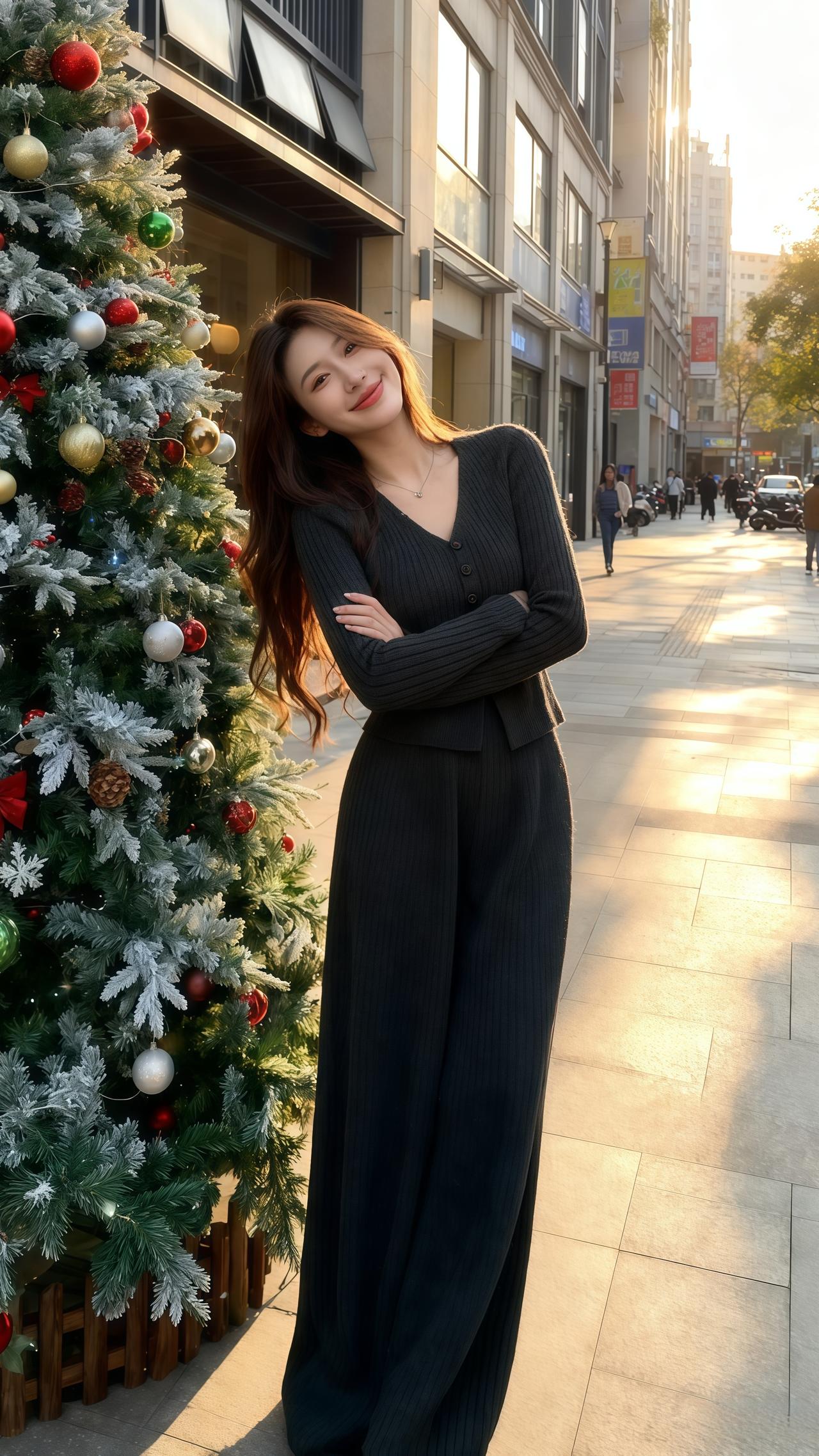 《红衫载满冬日柔光》冷风掠过窗沿时,她身着正红色针织衫立于浅光之中。