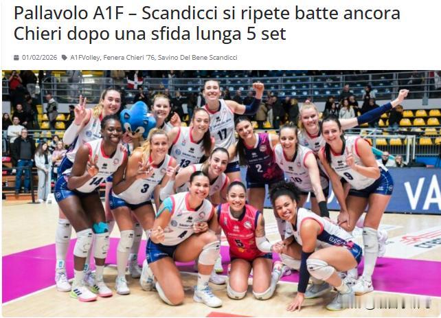 朱婷意甲前东家队友安德罗波娃(MVP)豪砍 30 分 斯坎迪奇再次经过五局苦战击败基耶里 斯坎迪奇凭借品格和沉重的实力赢得了胜利。她们在都灵贾尼阿斯蒂球馆,经过漫长且激烈的五局大战,在决胜局(15-13)击败了基耶里。面对强劲的基耶里,主教练马尔科·加斯帕里的球队赢得了本赛季第 31 场和联赛第 20 场胜利,同时在五局大战中保持不败:赛季四战全胜。 比赛以非常平衡的第一局开始,经过平分加加时以基耶里获胜(27-25)而告终。斯坎迪奇在第二局立即做出了回应(25-18),但在第三局,基耶里在关键时刻表现更佳,再次领先(25-21)。斯坎迪奇在第四局重新追平比分并占据主导(25-20)。在决胜局中她们以优异表现取得胜利(15-13)。 从技术统计角度看,斯坎迪奇在拦网方面尤其突出,以 14 次得分领先基耶里的 4 次,同时发球也表现出色(6 次发球得分)。扣球成功率两队相同(44%),证明了比赛整体的平衡。 全场最佳得分是接应安德罗波娃,得到 30 分,其中包括 5 次发球得分,因此她当之无愧地获得 MVP。基耶里队方面,内尔维尼和接应内梅斯各得到 24 分。斯坎迪奇将于 2 月 4 日星期三土耳其时间 19:30(意大利时间 17:30)再次出战欧冠,客场对阵伊斯坦布尔瓦基弗银行,这场比赛将决定欧冠冠军联赛 A 组积分头名的归属,排名第一将直接晋级八强赛。 基耶里 – 斯坎迪奇:2-3 (27-25、18-25、25-21、20-25、13-15) 基耶里:安图诺维奇、德格拉迪 3、昆兹勒 10、斯普利图 (自由人)、费拉里尼、博纳费德 (自由人) 未上场、阿尔贝蒂 未上场、范·阿伦 1、内尔维尼 24、巴哈 4、内梅斯 24、塞库拉耶夫 10、丹布林克、格雷 5 主教练:内格罗·萨维诺 斯坎迪奇:特拉巴里 (自由人) 未上场、贝奇斯、斯金纳 10、卡斯蒂略(自由人)、鲁丁斯 5、富兰克林 5、里贝奇 1、波塞蒂 6、奥格涅诺维奇 3、曼奇尼未上场、格拉齐亚尼 未上场、恩瓦卡洛尔 10、安德罗波娃 30、韦茨尔 13 主教练:加斯帕里 来源:电子排球杂志
