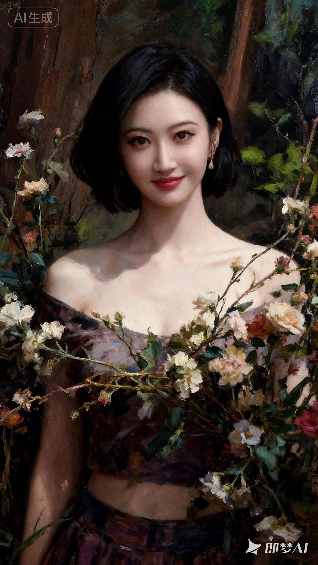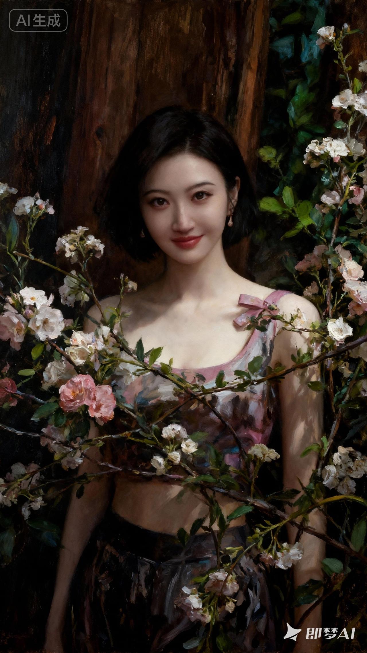 田园少女与自然亲密接触,笑靥如花,尽享美好时光。
