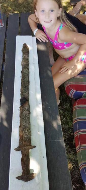 2018年,瑞典一名8岁小女孩,正与家人在湖中玩耍。突然,她发现浅水中立有一根棍子,就用手拔出来给父亲看。父亲接过一看,脸色都变了。 2018年瑞典的一个夏日,维多斯顿湖因持续干旱,水位降到了历年同期最低,谁也没想到,这片露出大片湖底淤泥的水域,会让一个8岁女孩的度假之旅,变成震惊考古界的奇遇。 这个名叫萨迦的瑞典裔美国小女孩,正和家人在湖边嬉戏,和姐妹打闹间,她随手往水里捞了一把,想捡根棍子把玩,却摸到个冰凉坚硬的东西,起初以为是埋在泥里的枯木,萨迦费了九牛二虎之力才把它拔出来,定睛一看,这棍子不仅带着锈迹,还有明显的剑柄,竟是一把长剑。 萨迦的父亲安迪本身是维京文化爱好者,看到这把剑的瞬间就变了脸色,他小心翼翼地接过剑,发现剑身虽锈迹斑斑,但木质剑柄和部分金属部件保存完好,长度足有85厘米,绝不是普通的现代物品,一家人当即决定中断度假,带着这把意外发现的古剑,赶往当地的延雪平省博物馆。 博物馆专家米凯尔·诺德斯特伦见到古剑后又惊又喜,直言不是每天都能有人在湖里踩中一把千年古剑,经过专业检测,最初推测有千年历史的古剑,被最终确定距今已有1500年,追溯到公元5至6世纪,比维京时代还要早数百年,属于北欧日耳曼部落的器物。 这个结论让整个考古界沸腾,因为在斯堪的纳维亚地区此前发现的前维京时代文物寥寥无几,这把古剑的出土,为研究当时的冶金技术和社会文化提供了珍贵实物。 更意外的是,博物馆组织潜水队和金属探测器在发现地排查时,不仅找到了一枚同期的精美胸针,还挖出了18世纪的硬币,进一步丰富了遗迹的历史层次。 关于古剑为何会沉于湖底,专家们也曾有过争议,起初猜测周边可能是古代墓地,但随着胸针等文物的出土,更倾向于这里曾是祭祀场所,在北欧古代文化中,将兵器投入水中祭祀神明是常见习俗,这把剑或许是当时部落献给水神的祭品,不过这一推测目前仍缺乏直接证据,湖底是否藏有更多遗迹,至今仍是未解之谜。 事件曝光后萨迦瞬间成了全网焦点,她拔起古剑的场景,像极了亚瑟王从石中拔剑的传说,网友们纷纷调侃要封她为瑞典真正的女王,还有人开玩笑说这是天选之人才能解锁的宝藏。 当地媒体争相采访,学校甚至专门举办聚会,播放她的采访视频,让这个小女孩成了传播历史的小使者。 值得一提的是,萨迦一家没有私藏这柄古剑,而是无偿捐给了博物馆,经过多年精心修复,这把千年古剑早已对公众展出,成为博物馆的镇馆之宝,它不仅见证了北欧古代的文明变迁,更诠释了意外发现背后的历史温度。 其实很多重大考古发现都藏在偶然里,就像这把因干旱重见天日的古剑,它沉睡湖底1500年,躲过了岁月侵蚀,最终被一个孩子的好奇心唤醒,而萨迦的故事也告诉我们,对世界保持敬畏与好奇,或许下一个照亮历史的惊喜,就藏在不经意的瞬间。 麻烦看官老爷们右上角点击一下“关注”,既方便您进行讨论和分享,又能给您带来不一样的参与感,感谢您的支持!