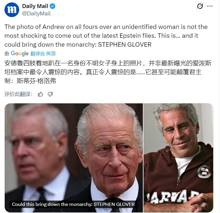 安德鲁·蒙巴顿-温莎会推翻君主制吗?这个问题似乎有些荒谬,因为过去王室也曾经历过诸多重大丑闻,却依然存活了下来。 但针对这位名誉扫地的前王子的最新一系列指控,将进一步加深公众对他那种自以为是、卑鄙、贪婪且似乎不讲真话的形象的看法。他正是许多共和派人士所厌恶的君主制的典型代表。 我预计还会陆续有更多有关蒙巴顿-温莎的负面报道和照片出现。查尔斯国王想必也在担忧这种铺天盖地的指控是否会就此停止。 民调显示人们对君主制的支持度正在下降,因此共和派看到了趁机行动的机会。其中一位人士,即工党议员拉切尔·马斯凯尔,昨天上午在广播中呼吁对蒙巴顿-温莎家族的活动进行警方调查。 令人遗憾的是,国王又能做什么呢?恐怕所能做到的很少。他已经剥夺了他那愚蠢的弟弟的所有头衔,通知他必须离开位于温莎大公园内的皇家别墅(那里有 30 间房间),并将他驱逐到了诺福克郡桑德林汉姆庄园里一处相对简陋的住所。 查尔斯或许想把他的兄弟送进塔里关押,但可惜这是不可能实现的。或许他还有一些可行的其他措施可以采取,不过想来想去也想不出什么具体的办法。国王只能等待下一轮更具破坏性的爆料出现。 最新这批文件——这是美国司法部上周五公布的涉及被定罪的性侵犯人和连环强奸犯爱泼斯坦的 300 万页文件的一部分——其内容之恶劣程度简直达到了极致。