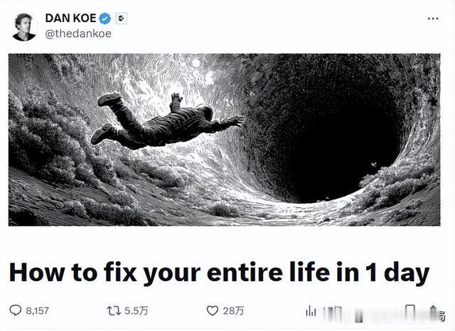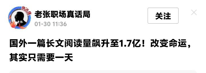 全网疯传1.7亿阅读神文!上海网友亲测:这3个反常识心法,真能让你在24小时内重启人生 最近,一篇来自国外的万字长文像病毒般席卷全球,阅读量飙升至惊人的1.7亿。作者Dan Koe抛出一个让所有人瞳孔地震的命题:《如何在一天之内彻底改变你的人生》。当国内网友搬运到上海本地论坛后,瞬间引爆热议,评论区炸出441条真实心声。 很多人第一反应是嗤之以鼻:“又是毒鸡汤吧?”但当你真正读完,会发现它撕开了所有成长类文章的伪装。它不教你咬牙坚持,反而告诉你“努力是反人性的”。它不给你画大饼,却让你用“恐惧”当燃料。这篇文章的火爆,恰恰戳中了这个时代我们共同的焦虑与渴望。 身份改写:你不是在戒烟,你本来就是不抽烟的人。我们总被灌输“坚持就是胜利”,但现实狠狠打脸——靠意志力死撑的事情,90%会失败。那篇爆文一针见血:真正的高手,早就不靠“坚持”活着了。他们只是换了个身份。 想象两个戒烟的人面对递来的烟。一个说“我在戒烟”,另一个说“我不抽烟”。这细微的差别,却是天壤之别。前者仍在自我消耗,每一次拒绝都在预支意志力;后者早已完成身份重塑,不抽烟只是他理所当然的状态。 这在上海陆家嘴的精英圈里早已不是秘密。那些凌晨五点起床健身、全年无休的狠人,从来不说“我要坚持早起”。他们只是淡淡一句:“我习惯了这个节奏。”当你把自己定义为“健康生活者”,沙拉和跑步机就不再是折磨;当你认定自己是“知识捕手”,读书就成了本能需求。 恐惧驱动:你逃避的画面,比梦想更能让你早起。新年flag年年立年年倒,为什么?因为大脑对模糊的快乐无感,却对具体的痛苦极度敏感。那篇文章里最扎心的一问,让无数上海网友深夜破防:“如果五年后什么都不变,在一个普通的周二,你会在哪里醒来?” 请你现在闭上眼睛想象:五年后的自己,身材走样、账户空空、眼神麻木,依然在挤着早高峰地铁,刷着短视频度过又一个平庸的夜晚。那种扑面而来的窒息感,是不是比任何励志口号都更让你坐立不安? 浦东某互联网大厂的产品经理留言:“看完这段,我立刻删掉了购物车里的游戏机,报名了雅思班。我不是想要什么,我只是死都不要变成自己看不起的样子。”真正的改变,往往始于“我受够了”,而不是“我想要”。让对现状的厌恶,成为你每天早上弹射起床的推进器。 极简行动:每天只做三件事,你就能甩开90%的人。现代人最大的错觉,就是把忙碌当努力。收藏无数干货、制定冗长计划,结果陷入“清单焦虑”,真正重要的事一件没做。那篇神文给出的方案简单到令人怀疑:每天只做2-3件事,但必须是能撬动核心目标的关键动作。 在徐汇区经营咖啡馆的创业者分享:“以前我每天列十项任务,月底盘点毫无进展。现在我只盯三样:研发新品、维护老客户、学习财务知识。三个月后,营业额翻了倍。”这暗合二八定律——20%的核心动作,决定80%的成果。 别再贪多求全。如果你要健康,核心就是“运动30分钟”;如果你要提升,核心就是“深度阅读1小时”。哪怕一天只完成这两件事,你也已经走在超越大多数人的路上。持续30天,复利效应会让你看见惊人的差距。 时间不会等你,但你可以抢在时间前面 2024年已经进入下半场,物理学中的熵增定律告诉我们:如果不施加外力,生活只会自动滑向混乱。这意味着,维持现状就是慢性倒退。今天不改变,明年此时的你,大概率会比现在更焦虑、更疲惫、更无力。 那篇1.7亿阅读的文章最后写道:“别等到五年后的某个周二,你又在同样的地方读到类似的文章,点完收藏后继续麻木地滑动屏幕。”这记警钟,敲醒了太多假装努力的人。 此刻,请你拿出手机备忘录。不要写梦想,而是写下“五年后我死都不愿过的生活”。如果光是想象就让你心悸,说明你内心早已知道答案。真正的转机,从来不是某个遥远的未来,而是你决定不再忍受的——今天。 改变命运 逆袭心法 成长干货 (来源:本文基于Dan Koe爆款文章《How to fix your entire life in just 1 day》及上海本地论坛、社交媒体平台热议内容整合创作)