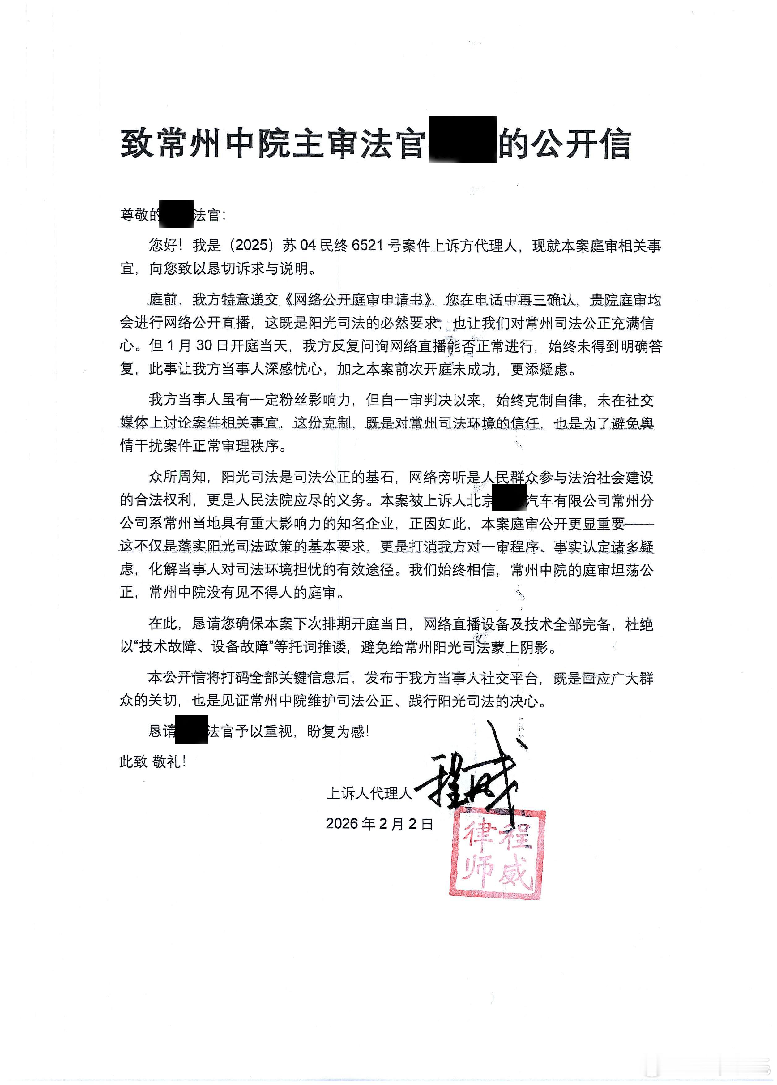 阳光司法,我们深信法治的力量,深信常州中院没有见不得人的庭审。