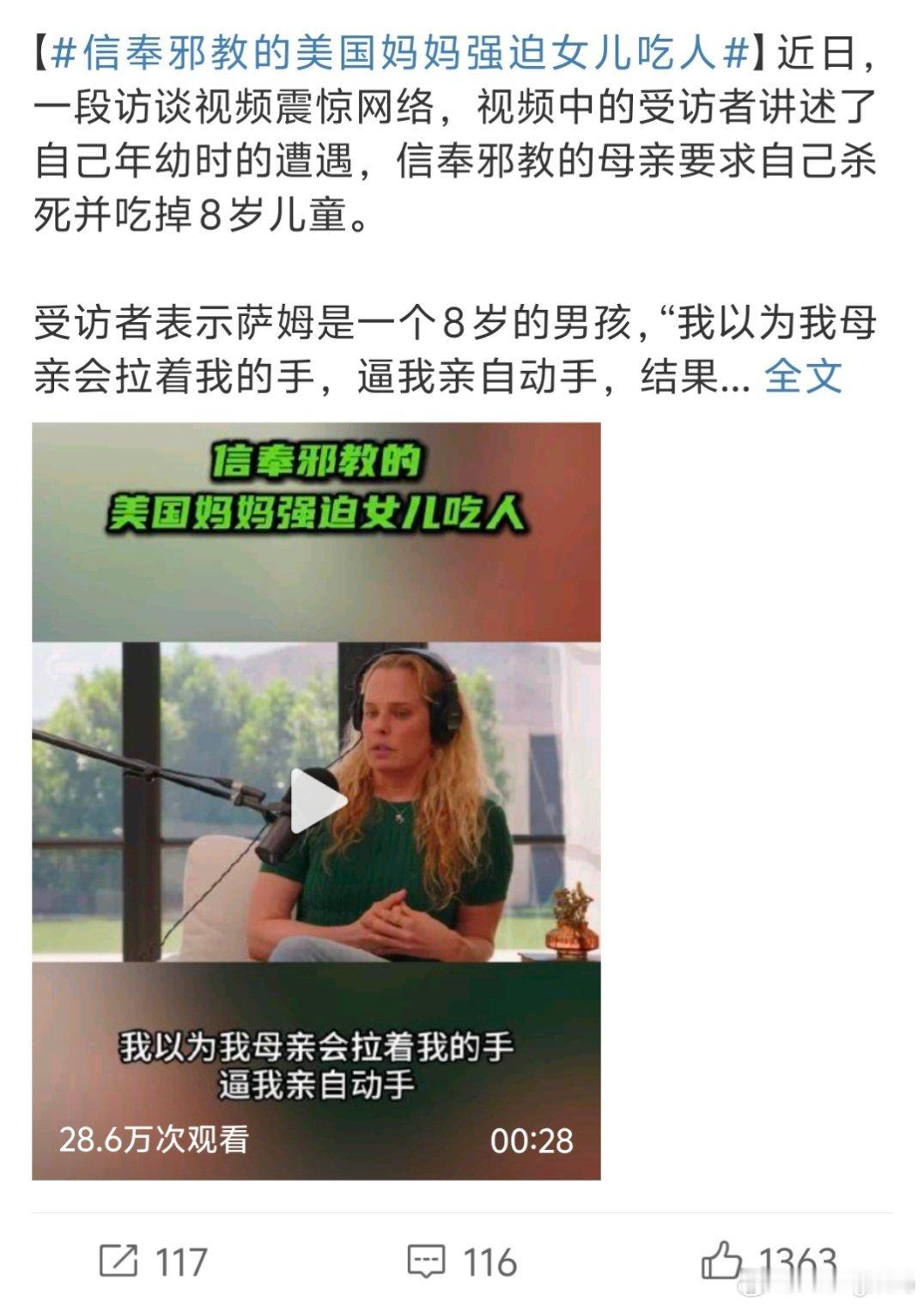 信奉邪教的美国妈妈强迫女儿吃人怎么感觉他们那么容易被操控国内妈妈们的迷信好像还真