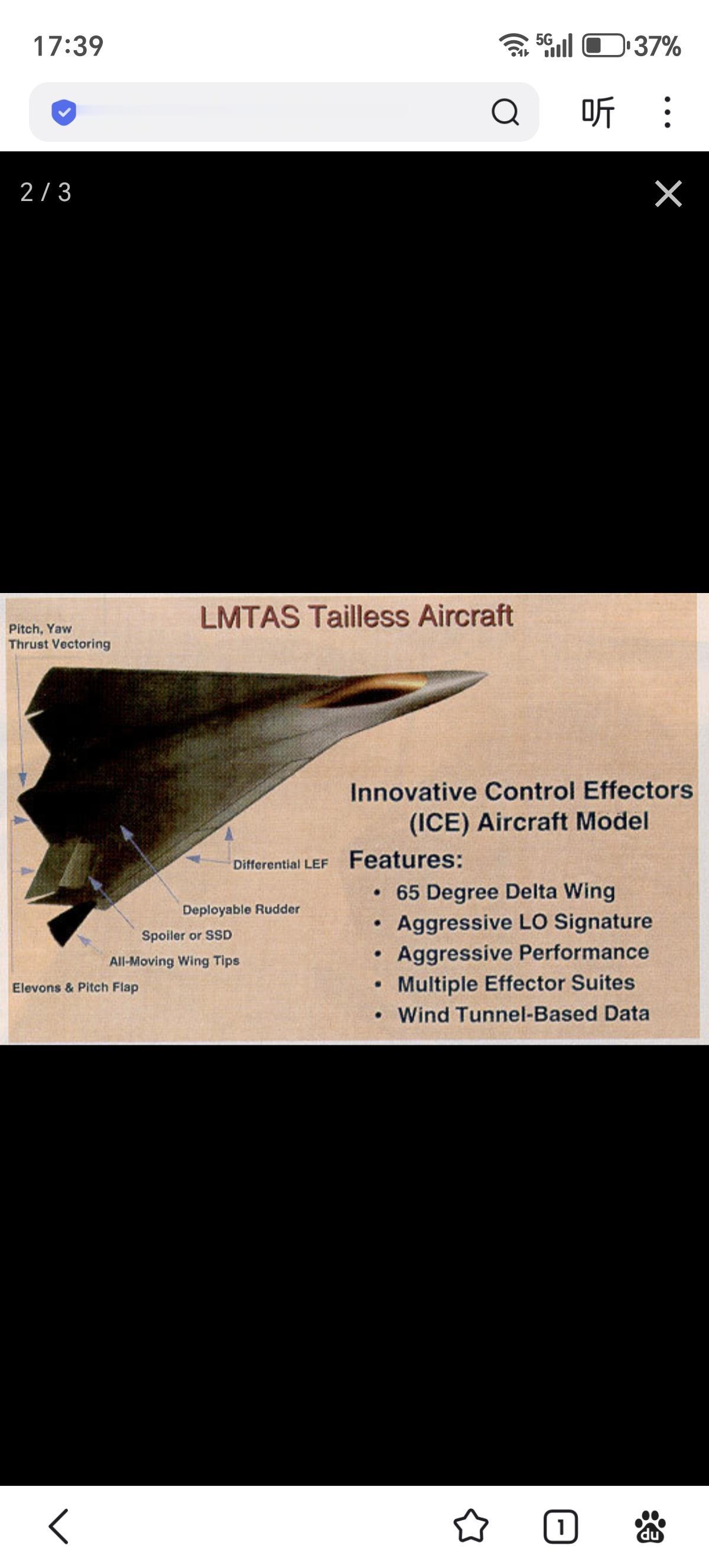 美国90年代对六代机的设想被东大实现了 无垂尾、外侧前缘襟翼、全动翼尖、兰姆达翼、柔性开裂式阻力方向舵等气动设计! 东大已经做出两款六代机飞上天一年多,且已制造了多架原型机,而西大过了近三十年后还是只有PPT,连缩比验证机都没做出来 PS:当时西大的六代机气动设计模型叫Innovative Control Effectors(ICE),创新控制效应器