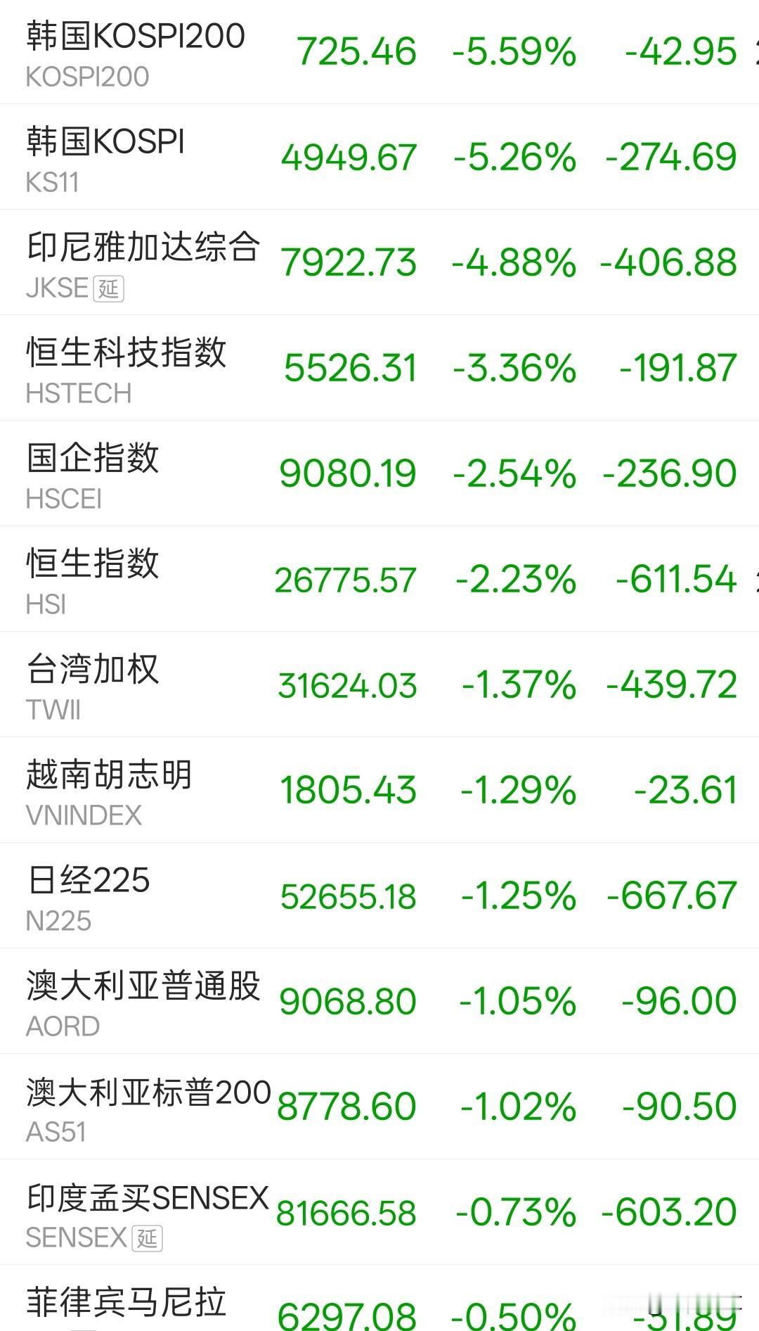 印尼熔断后,韩国熔断,一场围猎亚太市场的游戏或许正在展开 上周印尼雅加达综合指数突然大跌8%,触发熔断,第二天它又大幅下跌,最多跌10%随后拉回,它经过两天小幅震荡,今天又大跌4.88%。 今天韩国股指也出现了大跌,触发熔断,收盘大跌5%以上。 印尼上次熔断,市场解读为明晟威胁,要求印尼提高市场流通股比例,否则降低它的市场份额。这个解释,大家信了,那么今天韩国股指熔断又作何解释? 还记得97年东南亚经济危机吗? 以索罗斯为首的华尔街资本,精准做空东南亚。它们先做空泰国,随后是马来西亚、印尼、韩国等,最后兵败香港,结束了这场危机。 它们通过汇、债、股,配合舆论战,再通过国际货币基金组织,完成了一次对东南亚国家经济的一场收割。 现在明白为什么泰国要限制或者停止美元、日元期货,黄金白银期货了吧? 现在情况归根结底就是,全球资本市场经过长达近十年的牛市,现在都是强弩之末,大家不想自己被收割,那么只能先戳破别人给自己回血。 现在大幕已经拉开,不是东风压倒西风,就是西风压倒东风!