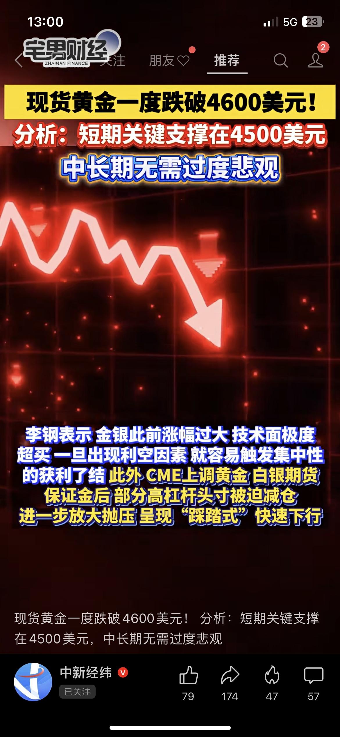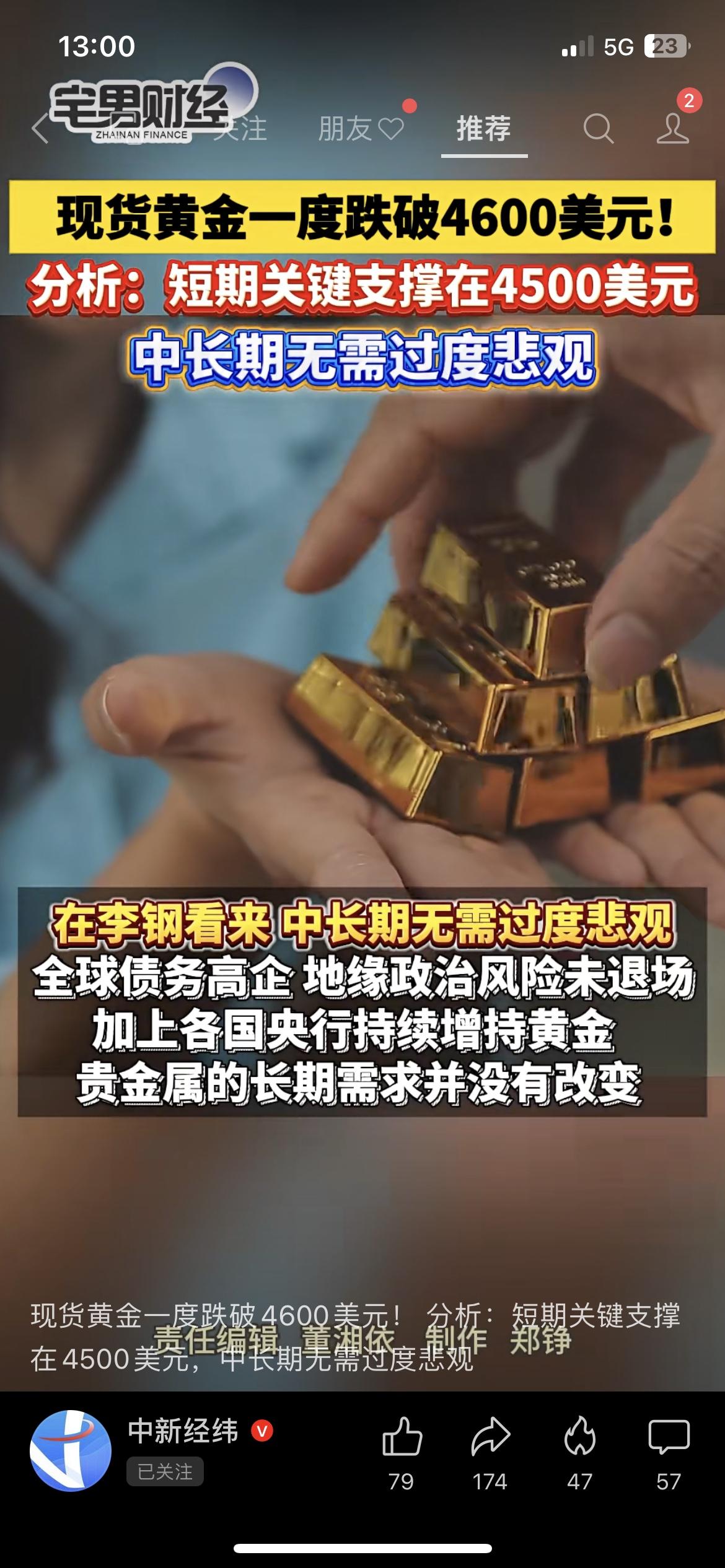 黄金暴跌6%破4600!足金一天跌超100元 今早现货黄金直接砸穿4600美元/盎司,周生生、老凤祥足金饰品单日跌超100元/克!开水果店的张叔上周刚买的金镯子,直接亏了2300多,悔得拍大腿~扎心金句:追高黄金的哭晕,抄底的敢进场,普通人玩黄金全靠赌心态。 你会趁跌加仓规模10亿以上的黄金ETF,还是等企稳再出手? 黄金理财 财经热点 黄金大跳水 理财避坑 市场有风险,投资需谨慎