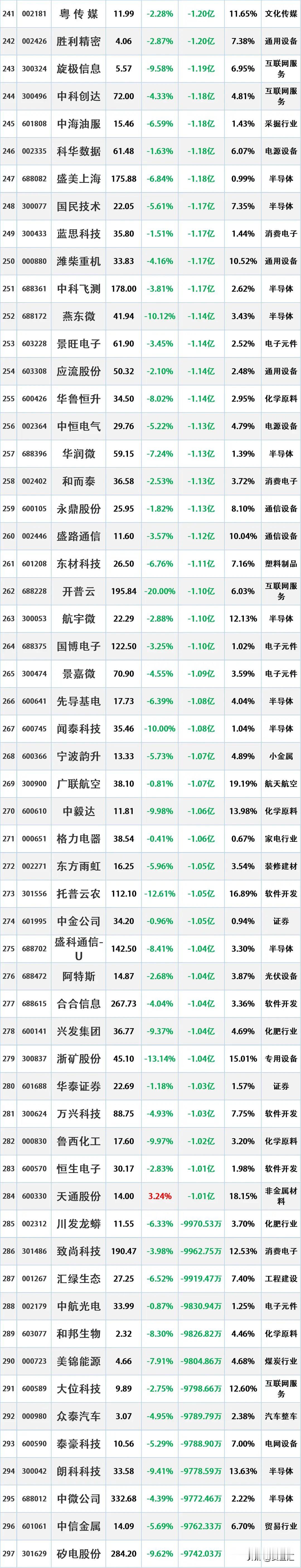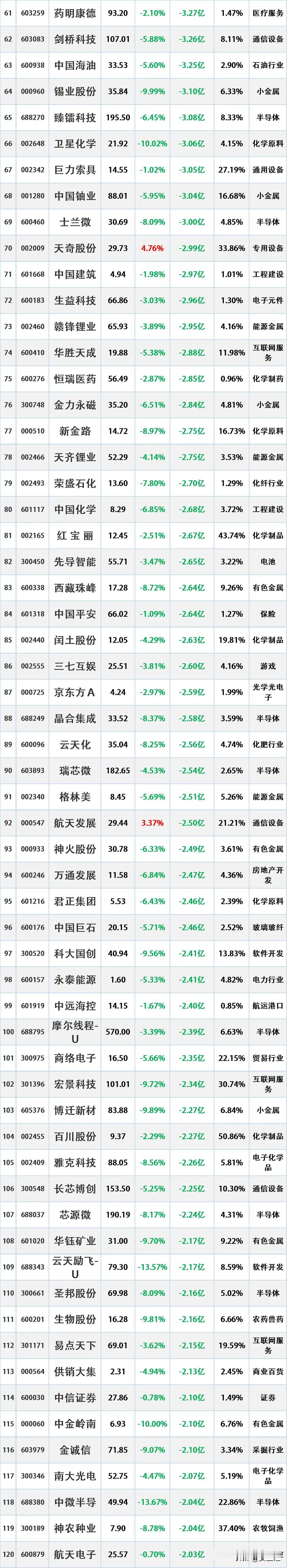 注意了,资金大幅流出,2026年2月2日主力“大幅卖出”的股票名单 2026-