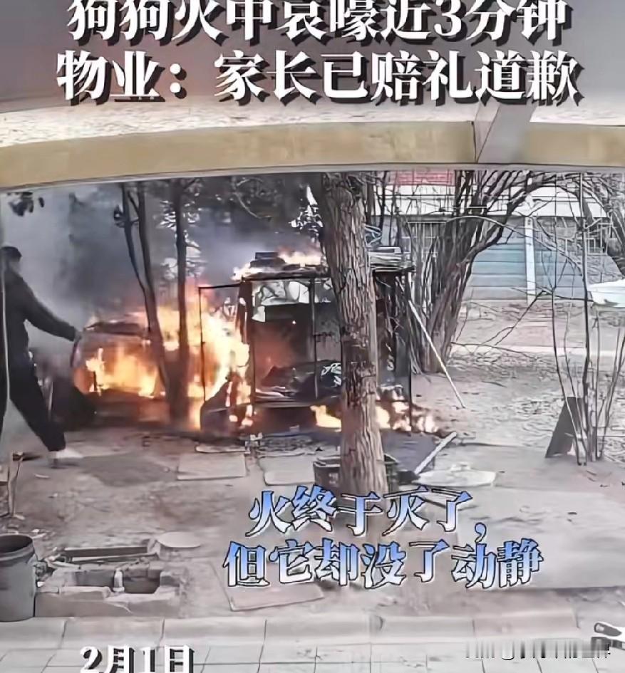 连云港,两男孩用烟花烧死狗狗后续,让人怒火,“叔叔”上门抢狗主人手机。 2月1日,江苏连云港一小区,两名小男孩将点燃的烟花扔进狗笼,导致一只饲养7年的萨摩耶被活活烧死,狗狗持续惨叫达3分多钟。 狗狗主人发视频称,事后有“叔叔”上门抢狗尸掩埋并拍照,还抢狗狗主人的手机。 据说是涉事其中一男孩的父亲是辅警。 如果这个视频属实,有点知法犯法的味道了。 你家孩子犯事,烧死了人家的狗,不光不悔改道歉,还穿着那身衣服上人家抢夺狗狗尸体埋掉,还抢人家的手机。 不知该说什么好。 注意看视频,这两个孩子这次烧狗致死,并不是意外,他俩还曾用烟花追小鸡,只不过那只鸡幸运躲过了。 也就是说这俩孩子干这种事不是第一次了。 熟手! 孩子不懂事,大人也不懂事? 还穿着那身衣。