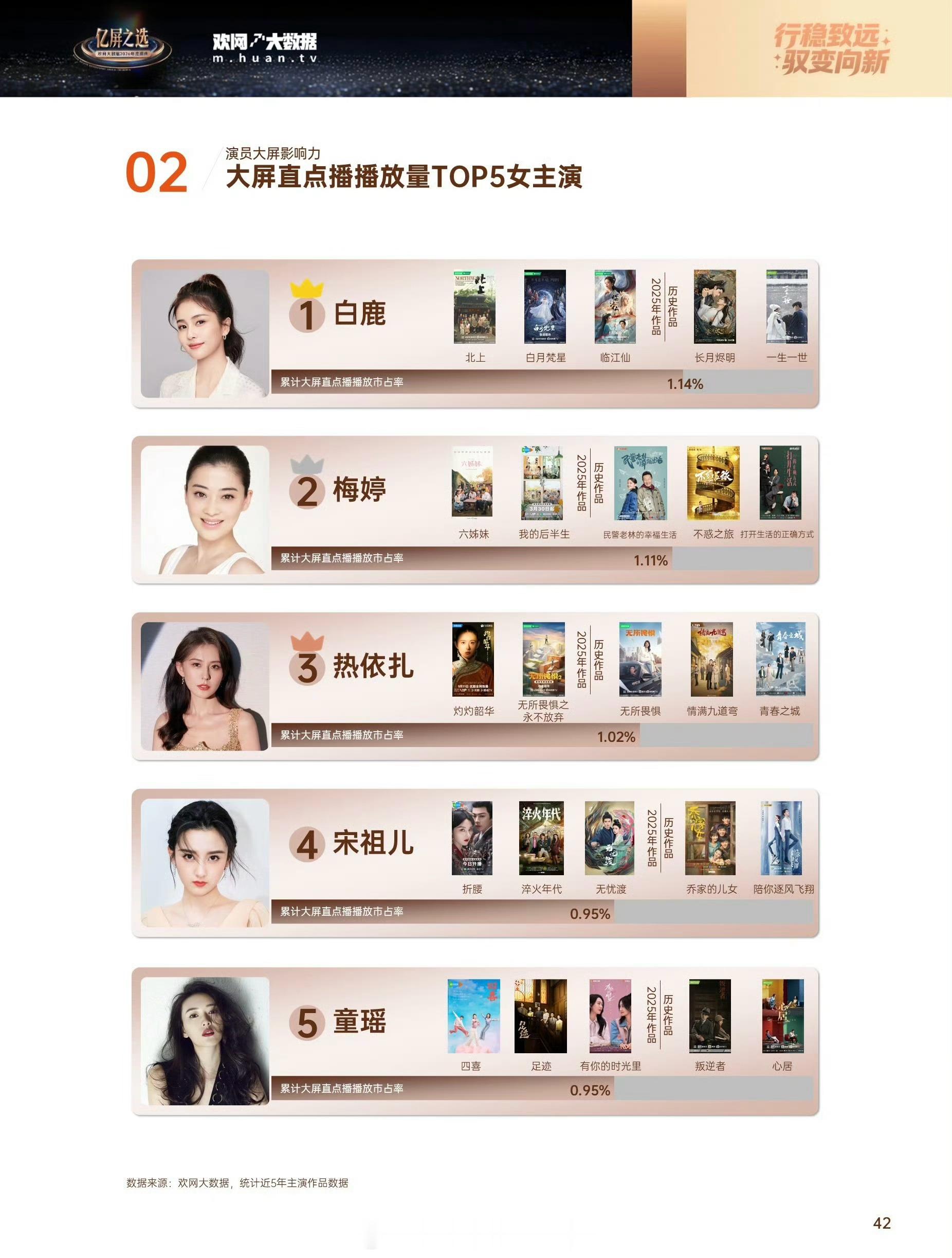欢网大屏点播播放量影响力女演员TOP1:白鹿