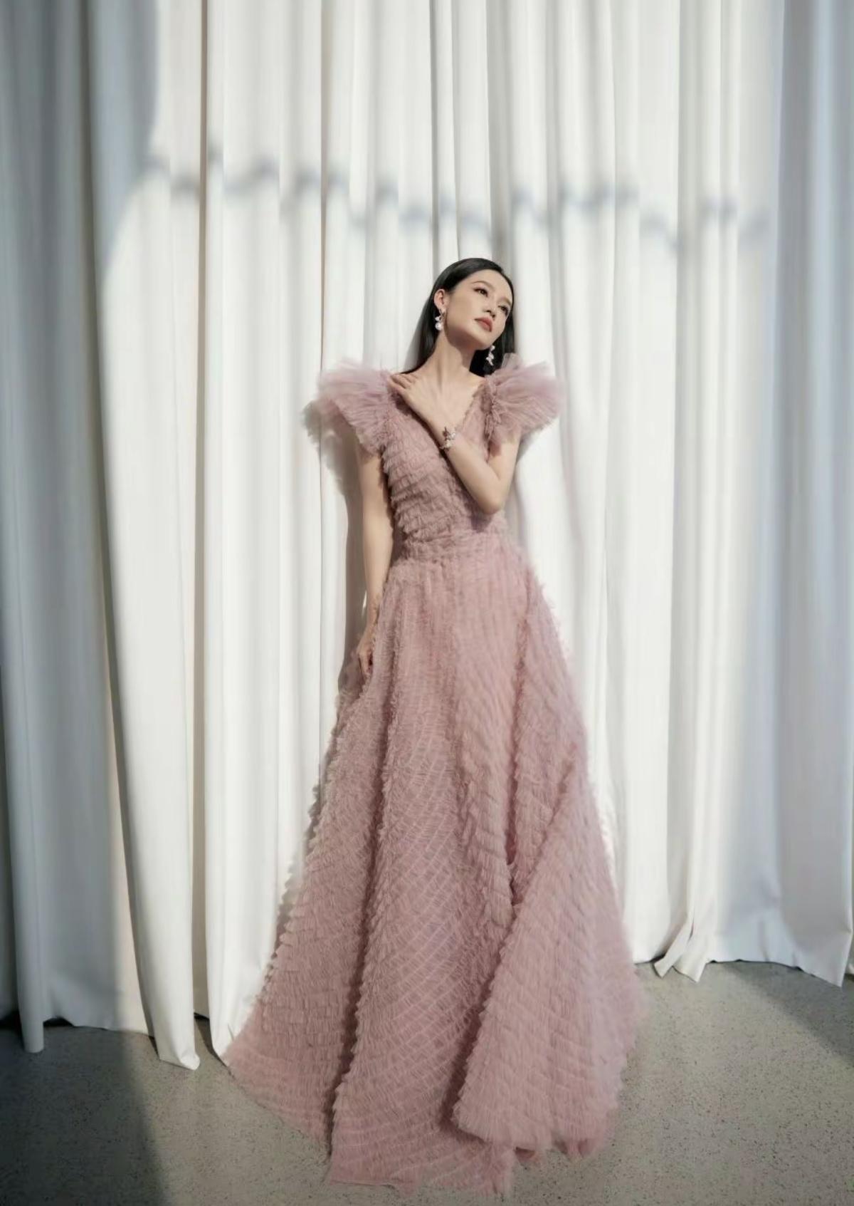 李沁这一袭豆沙粉纱裙,把江南女子的柔婉和都市女性的优雅焊在了身上。江风拂过裙摆的瞬间,美成一幅画[赞][给力][加一]娱乐明星