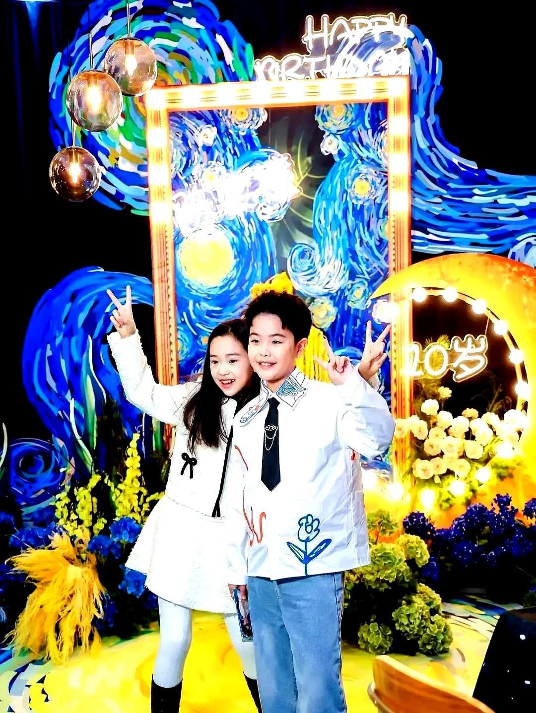 佟丽娅陈思诚再同框,默契得像从没分开过。 儿子朵朵10岁生日宴,陈思诚就站在佟丽娅旁边,咧着嘴笑。佟丽娅呢,全场张罗,招呼着儿子的一帮同学,指挥着流程,看不出半点不自在。 现场砸了大钱,整个布置成梵高的星空,梦幻得不像话。旋转的星空蛋糕,闪烁的星星灯,一看就是当妈的用了心。 更绝的是,董璇也带着女儿小酒窝来了。两个小孩,一个班的同学,从小玩到大。小酒窝直接上手挽着朵朵的胳膊,那亲密劲儿,就差直接叫“亲家”了。 你看看那张五人合影。佟丽娅,陈思诚,董璇,加上两个孩子。三家姓,硬是凑出了一家人的感觉。换做是你,面对前夫和闺蜜,能笑得这么坦然吗? 十年,朵朵的眉眼,活脱脱一个小陈思诚。佟丽娅发文说,不求你完美,只愿你勇敢。孩子悄悄跟她说,这是最棒的一天。 过不下去是两个人的事,养孩子是两个人的责任。