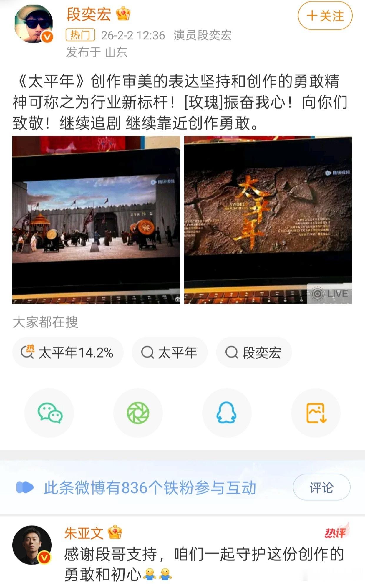 群星开始为开年大剧《太平年》打call了,往往这个时候就是开始剧集确实扑街了~