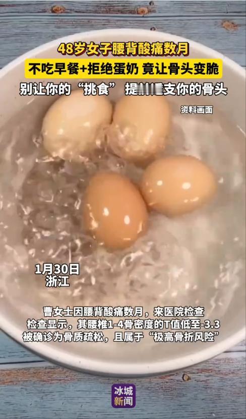“悲剧还是发生了!”1月30日,浙江,一48岁女子腰背酸痛数月、贴了膏药,吃了药都不见好,最后连弯腰困难才去医院检查,结果竟被确诊为严重骨质疏松,骨量流失程度堪比七旬老人,稍不注意就可能引发骨折。这一结果让她和家人都大吃一惊。 1月30日,浙江一位48岁女子的检查报告,让整个诊室的气氛都凝重起来。谁也没想到,困扰她好几个月的腰背酸痛,压根不是劳损那么简单,背后藏着的问题远比想象中凶险。 据了解,这位女子平时作息还算规律,没做过重体力活,只是几个月前开始,莫名出现腰背酸痛的情况。 一开始疼得不算厉害,就是久坐起身、早上起床时明显,活动一会儿就能缓解,她没太当回事,觉得就是上班族常见的腰肌劳损。 为了缓解疼痛,她先是买了常用的膏药贴在患处,每天按时更换,可贴了快一个月,酸痛感不仅没消失,反而偶尔会蔓延到腰部两侧。 之后她又自行买了活血止痛的口服药,坚持吃了一段时间,依旧没看到效果,疼痛还慢慢加重,到后来就连弯腰捡东西都变得十分困难,稍微动一下就疼得直咧嘴,严重影响了正常生活。 实在扛不住的她,在家人的陪伴下前往医院检查,原本以为只是需要开点强效药或者做个理疗,可骨密度检测等一系列检查下来, 结果让她和家人彻底懵了——被确诊为严重骨质疏松,骨量流失程度堪比七旬老人,骨骼脆性大幅增加,哪怕是轻微摔倒、用力咳嗽,都有可能引发骨折。 很多人都觉得骨质疏松是老年人的“专属病”,其实不然。数据显示,我国50岁以上女性骨质疏松患病率高达32.1%, 而近年来中青年患者日渐增多,像这位48岁女子这样的情况并不少见,尤其是女性进入围绝经期后,雌激素水平下降,会加速骨量流失,成为骨质疏松的高发人群。 更隐蔽的是,骨质疏松被称为“静悄悄的疾病”,早期大多没有明显症状,很多人都是出现持续骨痛、活动受限,甚至发生骨折后,才发现自己患病。 就像这位女子,一开始误把骨痛当成劳损,自行用药延误了检查,等到确诊时,骨量已经严重流失,后续需要长期调理才能减缓骨质进一步损耗。 很多人存在一个误区,觉得补钙越多骨头越硬,其实过量补钙不仅没用,还可能引发便秘、肾结石等问题。 成年人每日推荐钙摄入量为1000毫克,除了适量补钙,还需要补充维生素D促进钙吸收,平时多晒太阳、适当运动,避免长期喝浓咖啡、碳酸饮料,这些都能有效保护骨骼。 对于中青年女性来说,尤其是45岁以上的人群,建议每年做一次骨密度检测,及时了解自身骨骼状况,早发现、早干预,才能避免骨头“提前衰老”。 毕竟骨骼健康关乎日常生活,一旦出现不明原因的腰背酸痛、肢体无力,别盲目用药,及时就医排查才是最稳妥的选择。 对此,你们有什么看法,欢迎评论留言~