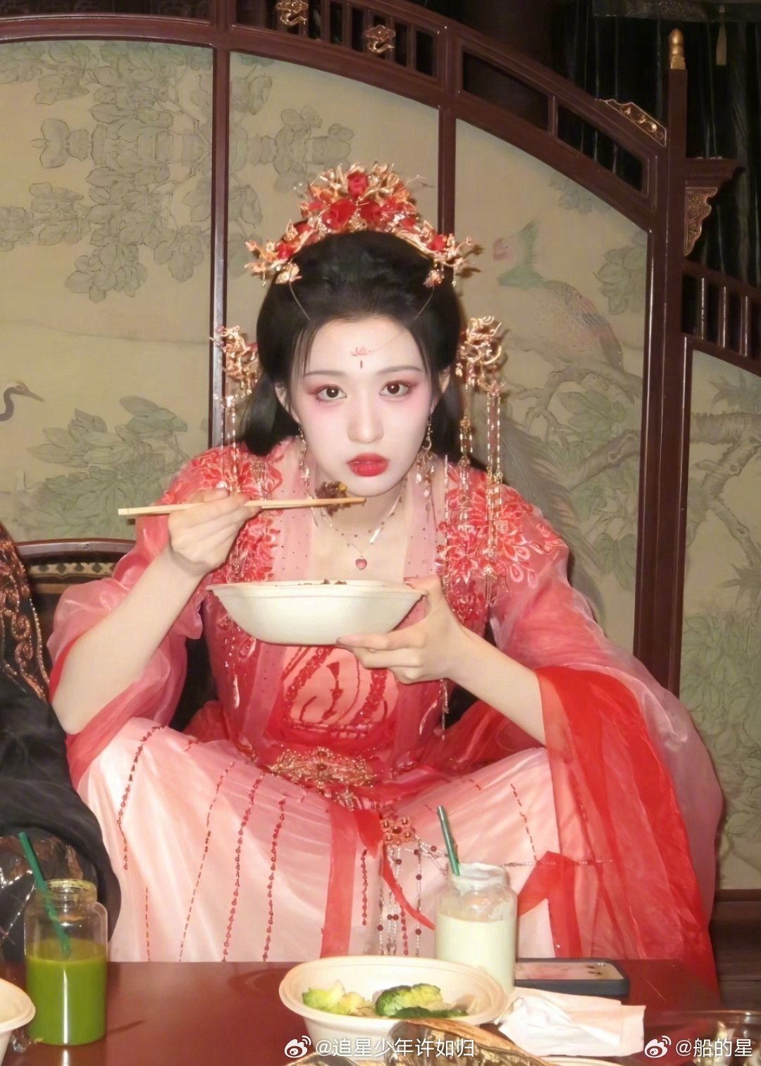 王楚然妖妃演累了吃口火锅 王楚然演的哪是祸国妖妃,明明是火锅妖妃!穿书成庾姐从社畜变深宫打工人,白天防暗算找老乡,晚上搓剧本忙不停,社畜味儿直接穿书附体,累了吃顿火锅怎么看都合情合理,这波共情直接拉满