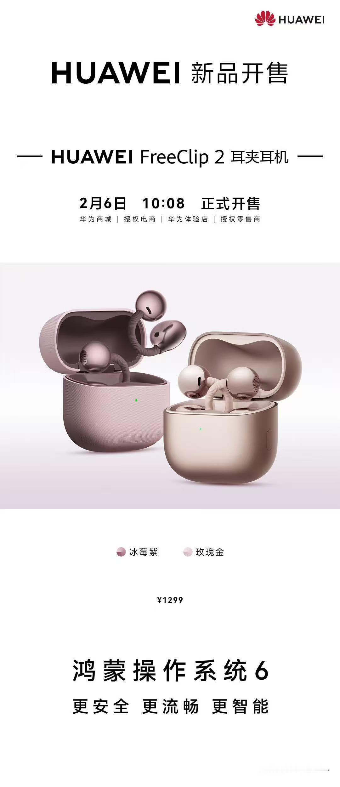 华为FreeClip2耳夹耳机新色开售作为一个数码爱好者,我发现华为FreeClip 2这次堆料挺狠。首发了麒麟A3芯片,还支持星闪连接技术。理论上连接会更稳、距离更远,在地铁站这种地方表现应该不错。最让我觉得好玩的是它的智慧交互,点头摇头就能接电话、播报信息。想象一下,早上洗漱时点头就能听新闻简报,手上沾着东西也不用碰手机。新色冰莓紫看起来很有现代冷感气质,感觉很适合追求个性又注重科技的都市人。产品今天上市,科技感这块拉满了。华为耳夹耳机新色开售首日火爆