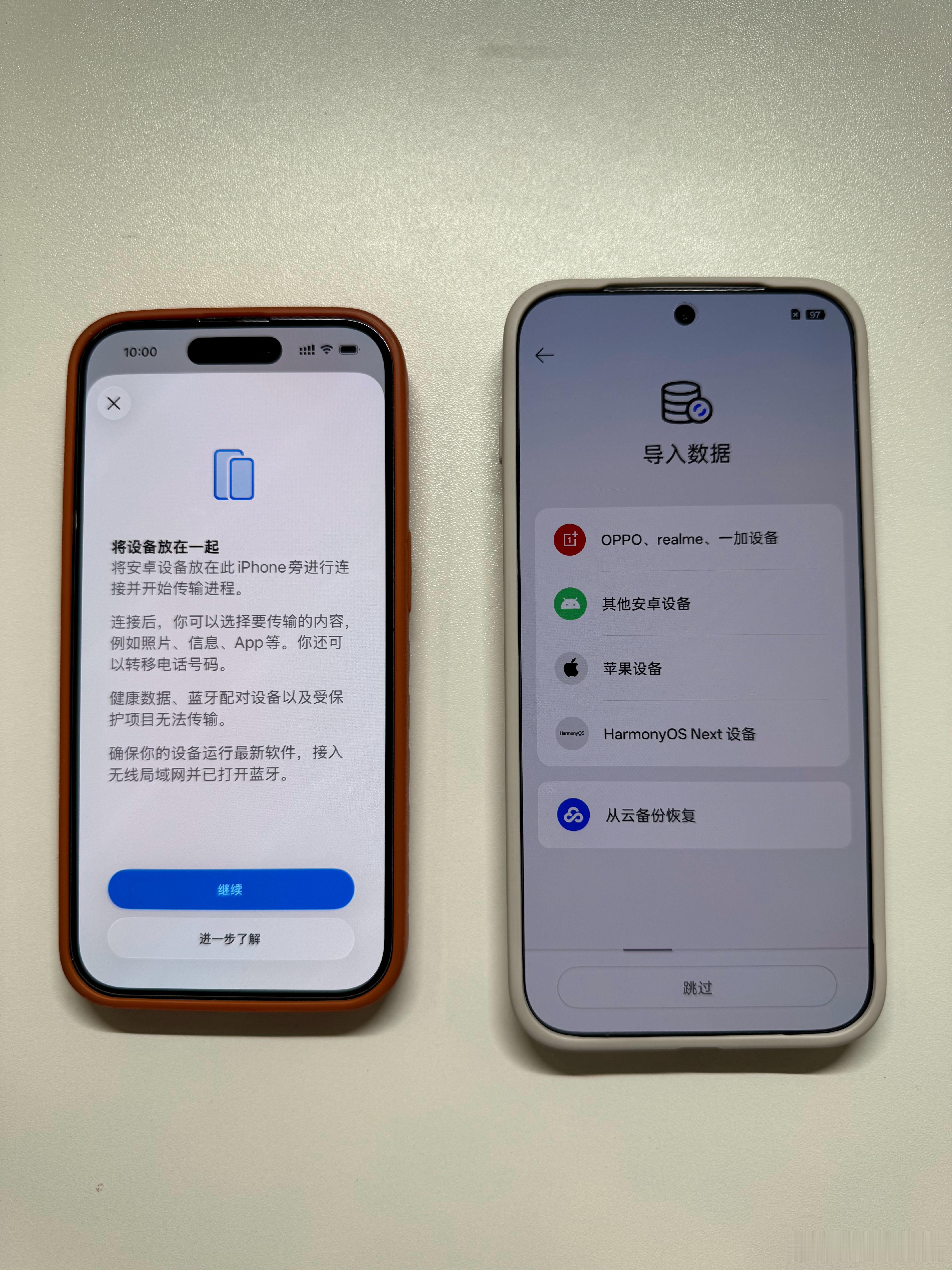 好消息:有原生 iOS 转移到安卓功能iPhone安卓无缝换机坏消息:我们尝试了小米、OPPO、华为、vivo 等国产品牌,均无法识别弹窗开启转移。另外,油管上有博主拿 Pixel 尝试转移,也是无法连接。