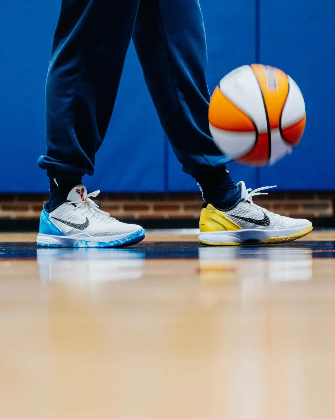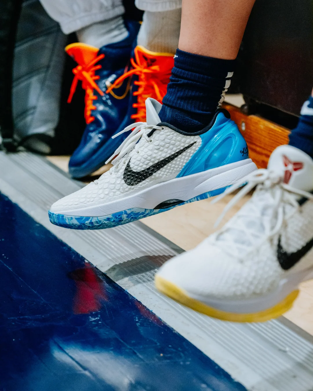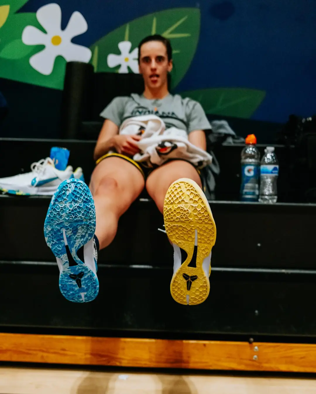 凯特琳-克拉克前两天晒了自己在训练中上脚的全新科比6代PE战靴,同时还发文挑战球迷:“如果你能猜出这是个啥配色设计,我就送你一双。”