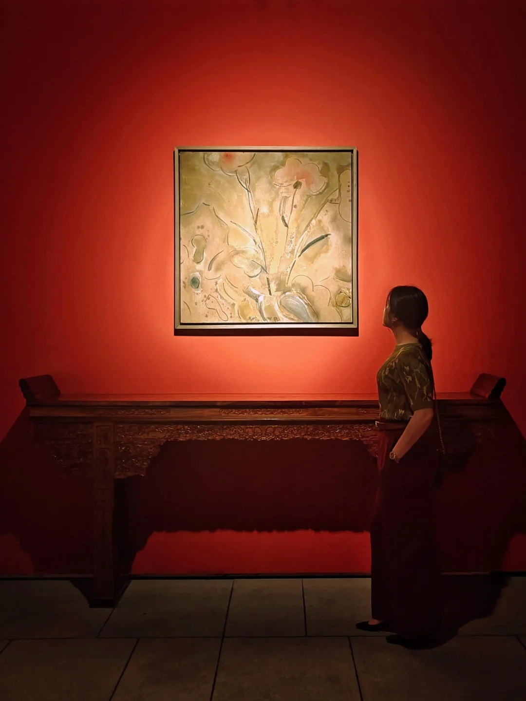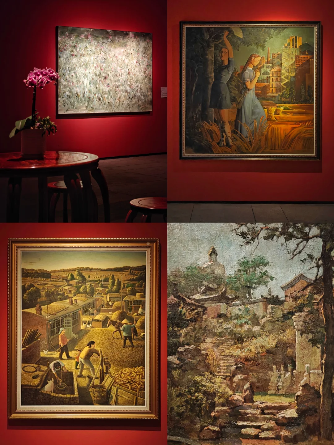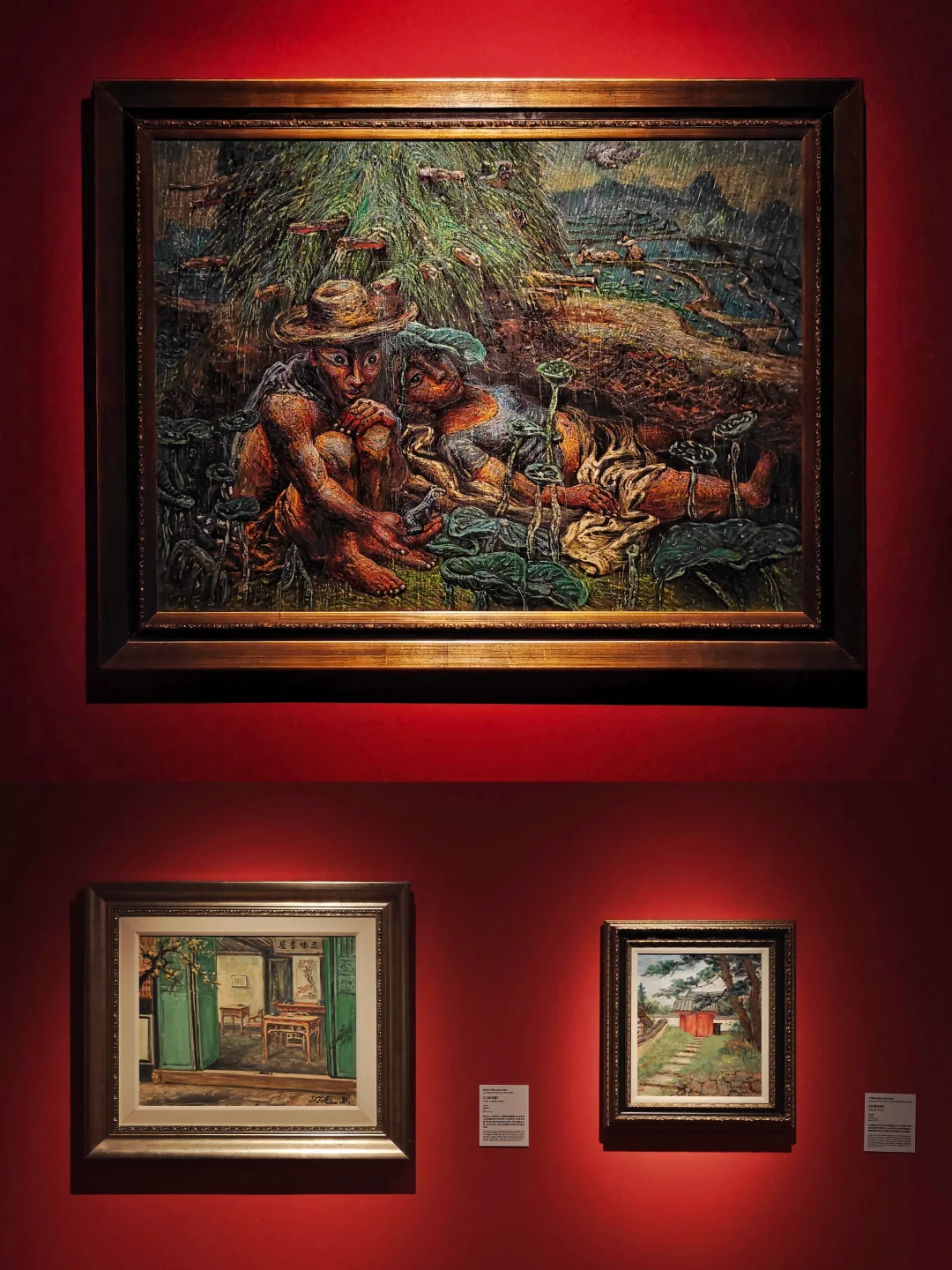 先说结论,不值得特地跑一趟,挺偏远的,附近的可以去看看。只开放一楼1个展厅,几件雕塑作品放在1楼大厅。展厅刷成红色墙,传统方盒子,绘画作品平均地挂在墙上(他家的挂画水平一如既往emmm),打光很随便,有的大画甚至只打了一半。作品不多,大部分画幅也不大,名家是名家,但没有什么重要作品,而且多少都在之前的展上见过。