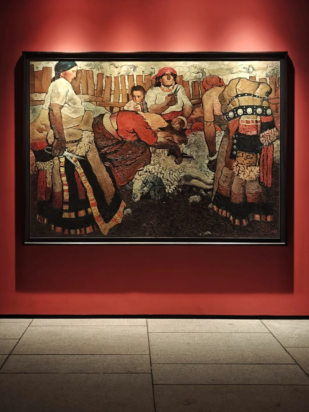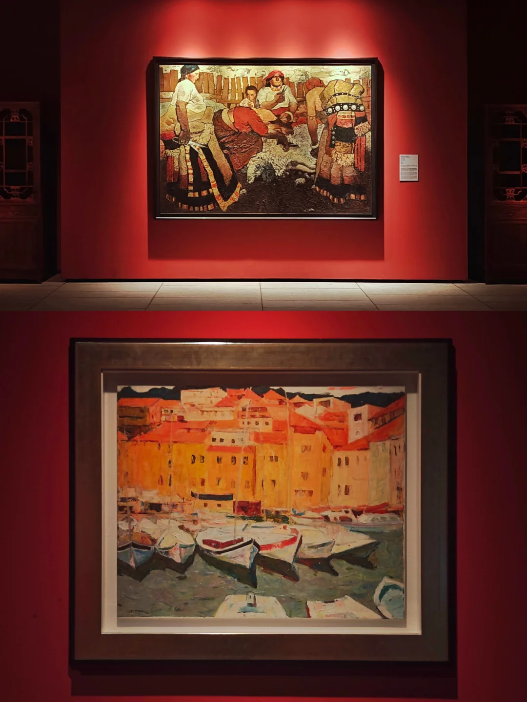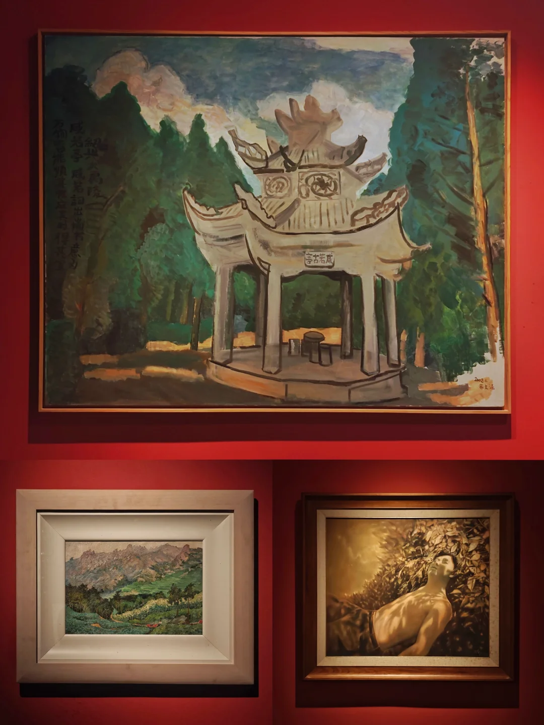先说结论,不值得特地跑一趟,挺偏远的,附近的可以去看看。只开放一楼1个展厅,几件雕塑作品放在1楼大厅。展厅刷成红色墙,传统方盒子,绘画作品平均地挂在墙上(他家的挂画水平一如既往emmm),打光很随便,有的大画甚至只打了一半。作品不多,大部分画幅也不大,名家是名家,但没有什么重要作品,而且多少都在之前的展上见过。