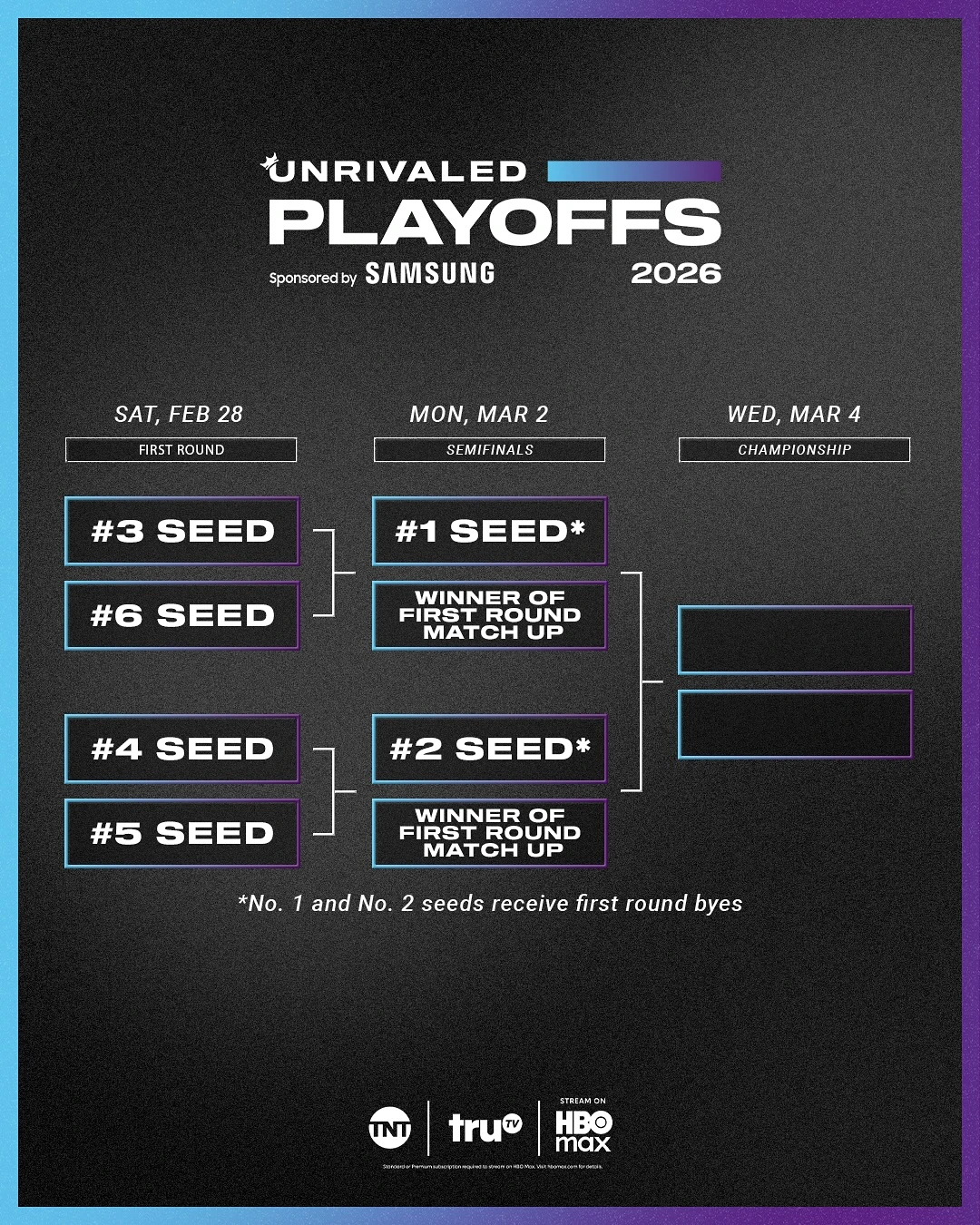 此外,Unrivaled今天还官宣了第二季的冠军奖金池,将大幅增加到60万美元(第一季为每人5万刀)。另外,今年季后赛的晋级方式也发生了变化,不再是四强直接开始半决赛,今年5、6号种子也将参与季后赛争夺——首轮由3号种子vs6号种子,4号种子vs5号种子,两场的胜者将与首轮轮空的1、2号种子进行半决赛。