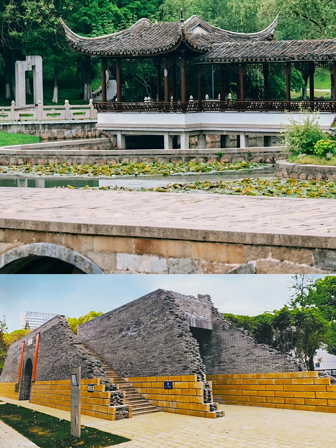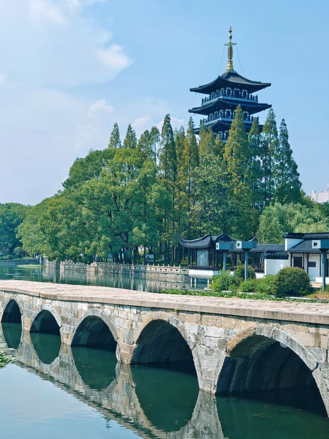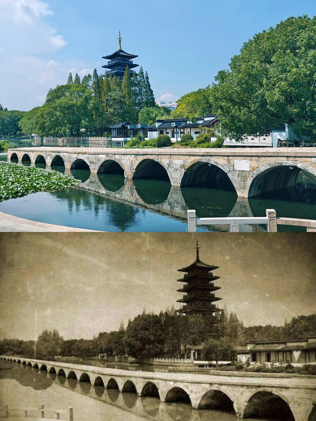 曲终过尽松陵路,回首烟波十四桥。\n\t\n👉去了苏州几十次,都没有去过吴江垂虹桥,直到今年中歌和苏州湾一起搞了个舞剧《垂虹别意·唐寅》,这才让我提起兴趣走一趟。正好离同里古镇不远,可以顺便一起打卡\n\t\n🌉三吴绝景,“环如半月,长若垂虹”,旧名利往桥,曾经的江南第一长桥垂虹桥,长度超越了中国古代十大名桥之一的宝带桥。1967年塌废,如今七十二孔只剩十六孔\n🌉始建于宋庆历八年,为石墩木桥,据传为《千里江山图》中长桥的原型,熙宁三年被焚毁。绍兴四年民间捐款重修,德祐元年又毁于兵\n🌉元泰定二年改建为连拱石桥,62孔,明代增至72孔,明清多次重修。桥身蜿蜒如虹,横跨吴淞江,桥下的三大孔高耸,便于行舟和泄洪。桥的两端各有一座亭子,分别名为“汇泽”和“砥定”,桥心处较为宽阔,造了一座垂虹亭,九脊飞檐,气势恢宏\n🌉数百位历代名人为其吟诗作画,如台北故宫藏米芾行书《吴江垂虹亭诗帖》,上博藏沈周《垂虹桥图页》,MET藏唐寅《垂虹别意图卷》,苏博藏文嘉《垂虹亭图》,王安石、苏辙、姜夔等人都歌咏过它\n🌉明代吴人南下送别,往往止于垂虹桥,此处可谓是送别文化大IP。明正德三年,徽州学子戴昭学成归乡之际,苏州三十余位名士于垂虹桥畔举行饯别雅集。参与者包括沈周、唐寅、祝允明等吴中名士,唐寅亲绘《垂虹别意图卷》记录盛况\n\t\n🛓华严塔:始建于宋元祐四年,原为华严讲寺附属佛塔。史上曾以\"塔寺钟声\"入选松陵八景,明代名臣王鏊登临赋诗“吴江高塔在,与客试来登。欲尽五湖胜,还须第七层。” 现存塔体为2005重建。我去的时候并未开放,据说塔内有《垂虹文化展》\n\t\n📐计成纪念馆\n计成是《园冶》作者,明代著名造园专家,吴江人。表作有常州东第园,仪征寤园,南京石巢园,扬州影园(清初扬州八大名园之一)等。园林式的小博物馆,展陈做得不错,3个展厅内都有空调好评!\n\t\n🪨绿化、水体、回廊与别处移来的假山石构成公园整体景色,相当漂亮。秋天来景色应该会更美,恰似米芾笔下的“垂虹秋色满东南”\n\t\n🧱东门城墙:为新建,历史可追溯至元至正十六年\n\t\n🏠垂虹小筑:现代建筑,新晋地标,不过目前招商似乎不太给力。天气好的时候可以拍出不错的照片\n\t\n🌳附近有松陵公园,园林风格,也可顺便逛逛,公园对面有个回厢咖啡不错可以歇歇脚\n\t\nℹ️\n垂虹遗址公园\n📍苏州市吴江区松陵镇东门外\n\t\n
