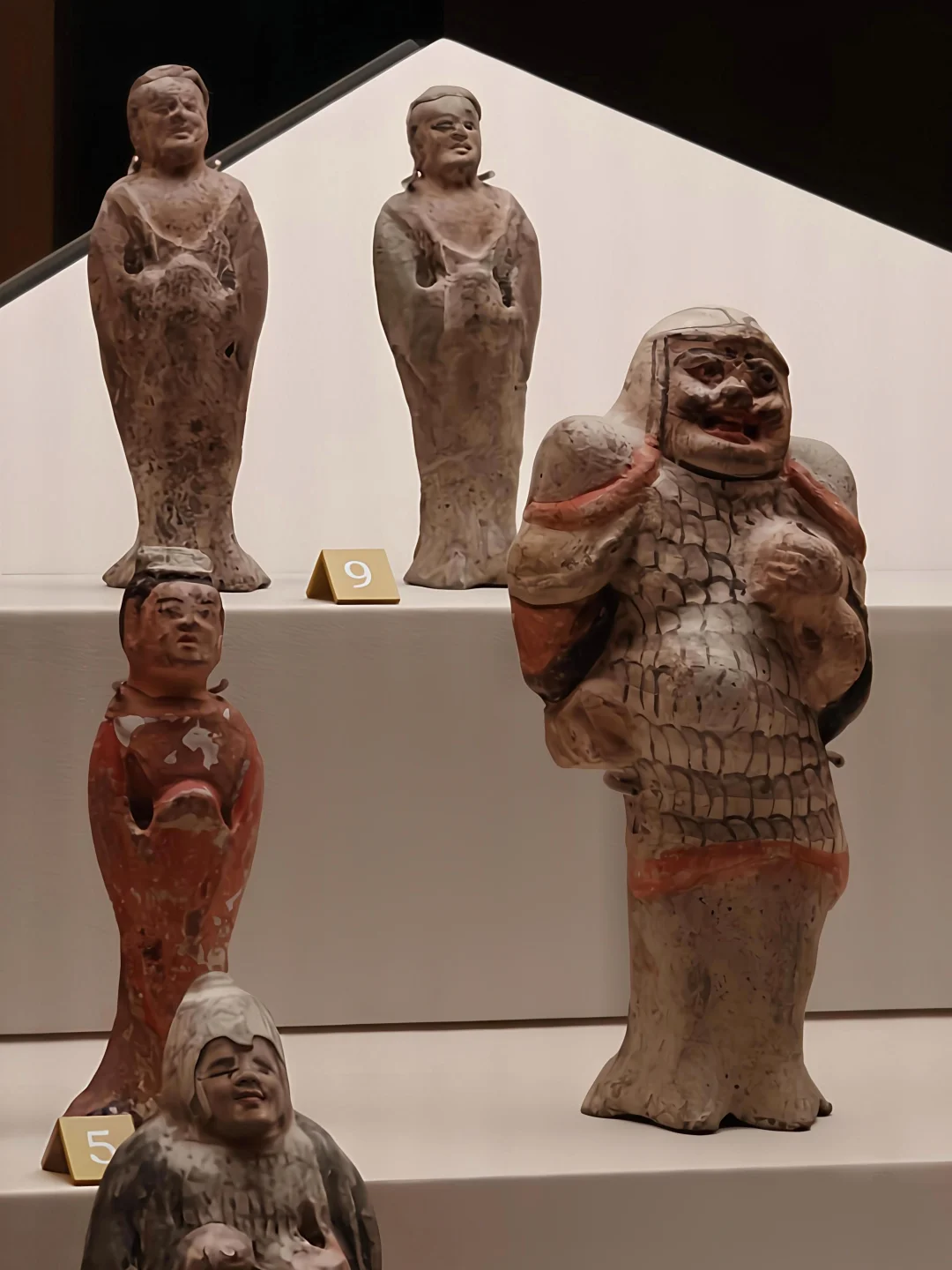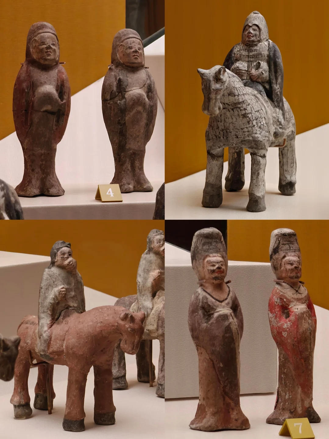 仪仗俑有具装甲骑俑、吹奏骑俑、武官俑、文吏俑等,身体实心,背部扁平。