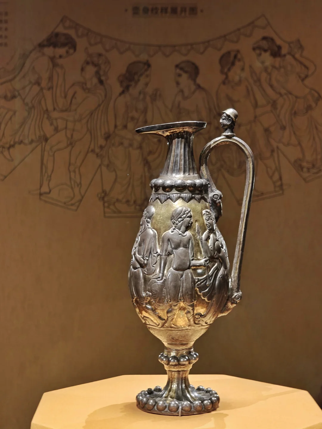 典型的萨珊风格,基本上保留了玻璃原有的色泽和亮度,是萨珊玻璃器中的珍品。当时玻璃比黄金还贵,是贵族们追捧的宝物。